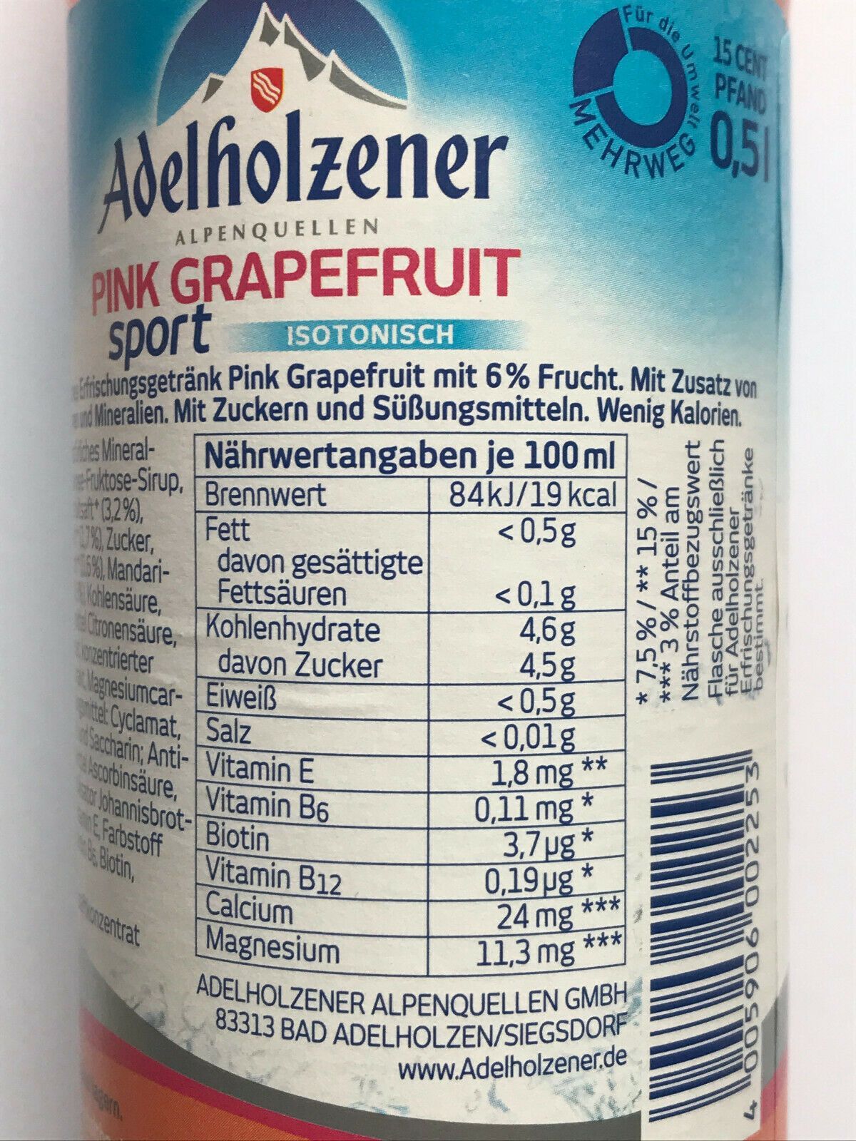 1x500ml Adelholzener Sport Pink Grape PET - Mehrweg -