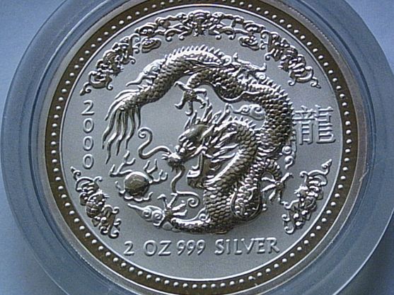 2$ 2000 Australien Lunar Drache 2 Unzen Silber 62,2g Silber in Original-Münzdose Differenzbesteuert nach §25a UstG. bei Fragen: