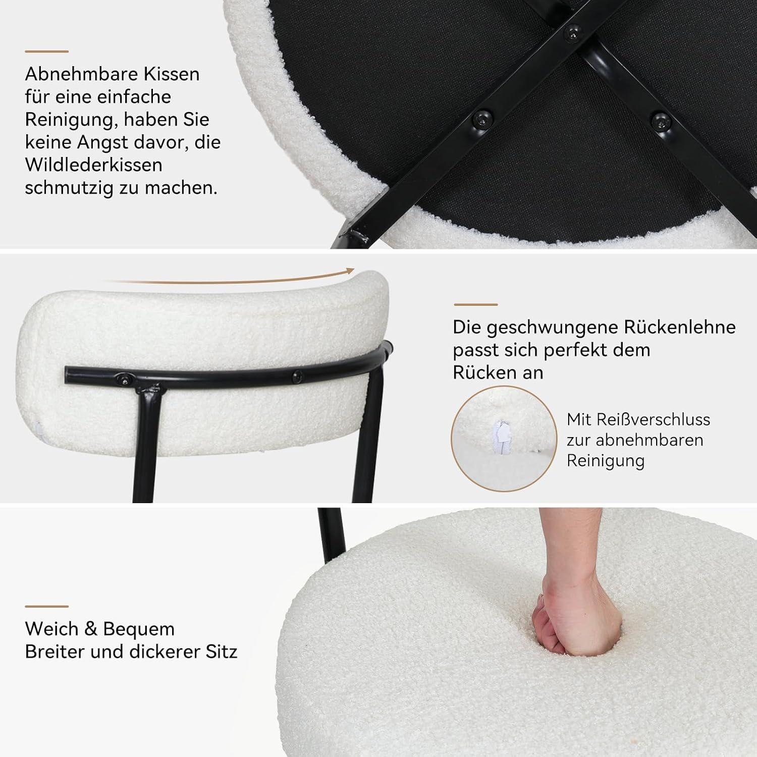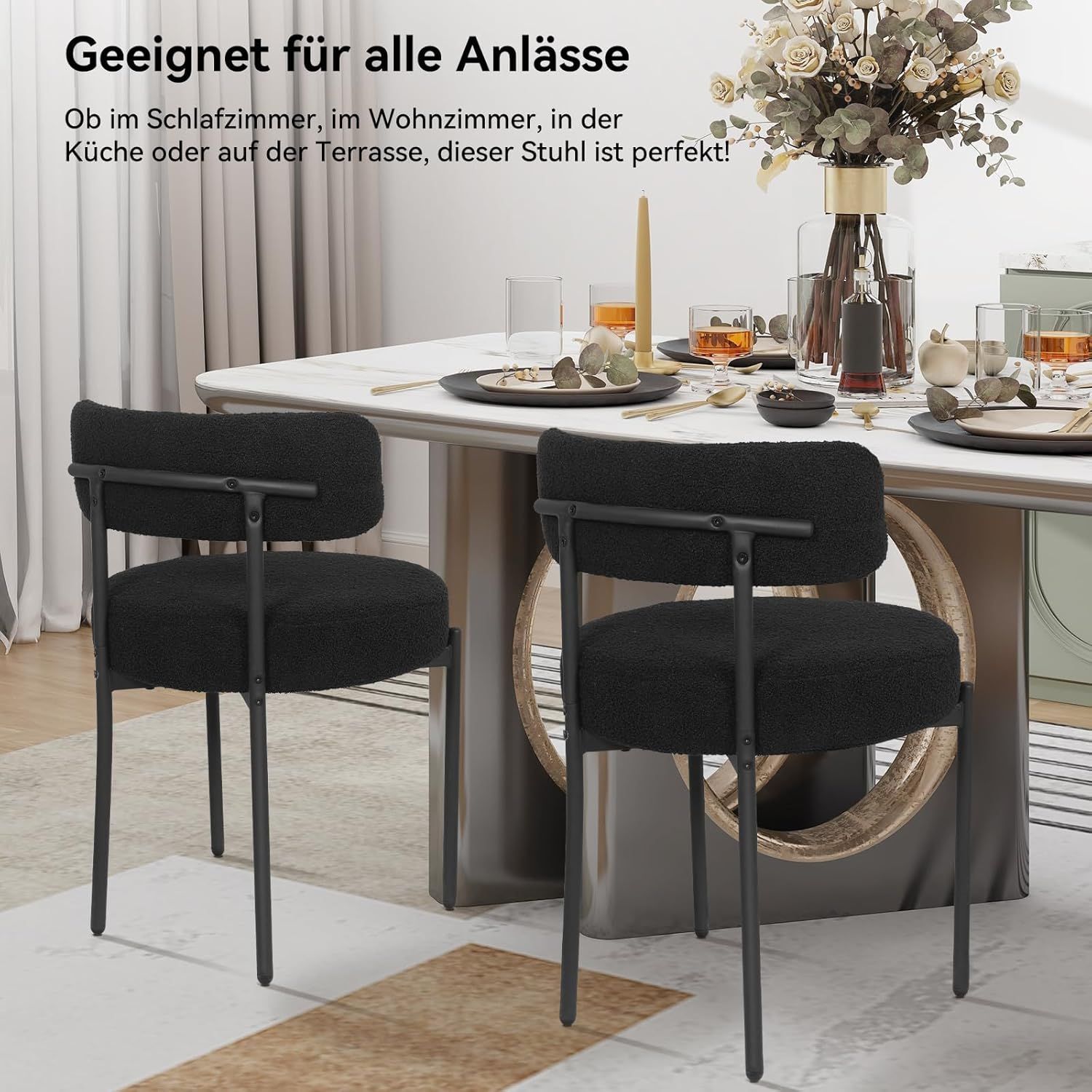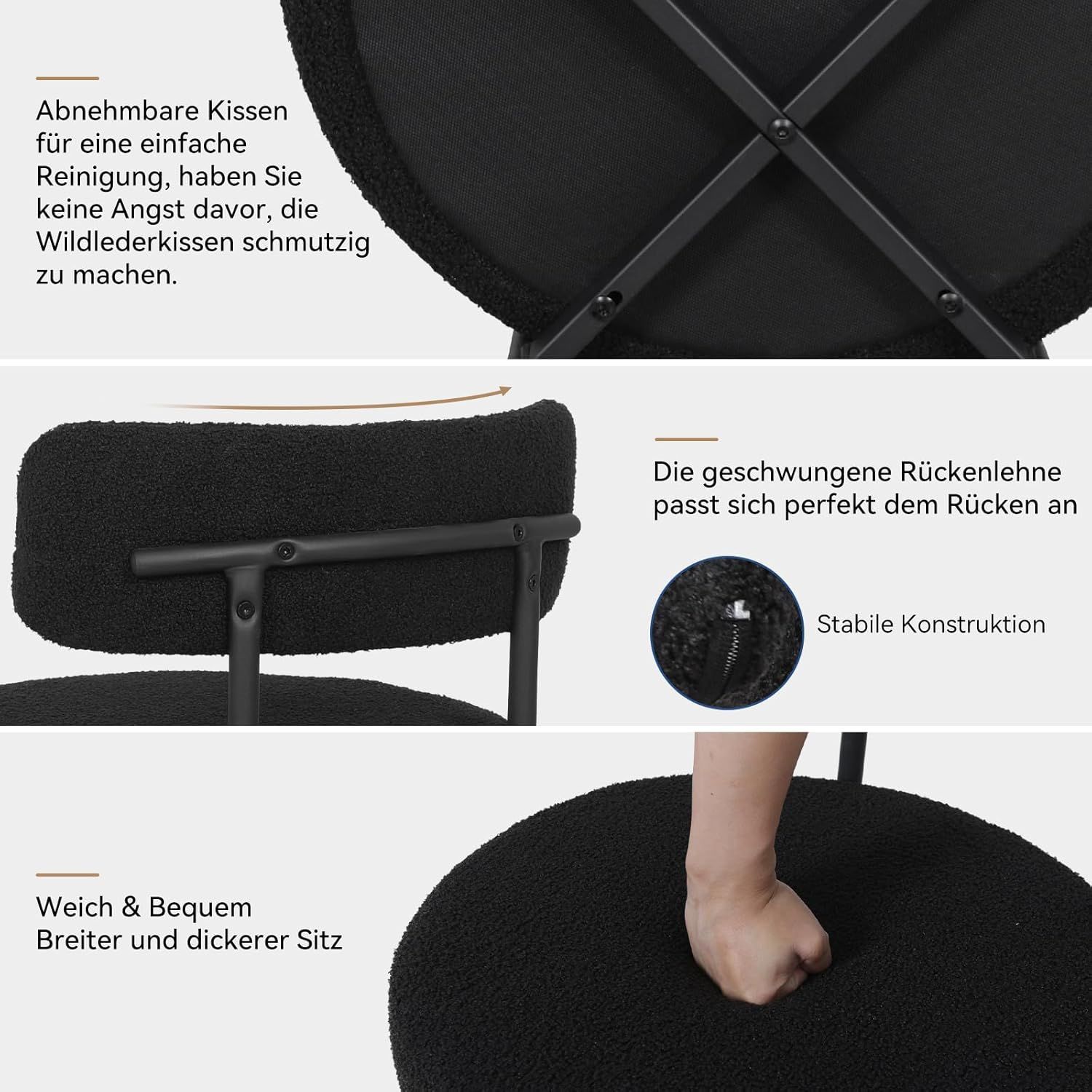 2/4/6er Sets Esszimmerstühle Polsterstuhl mit Rücklehne Wolle Boucle