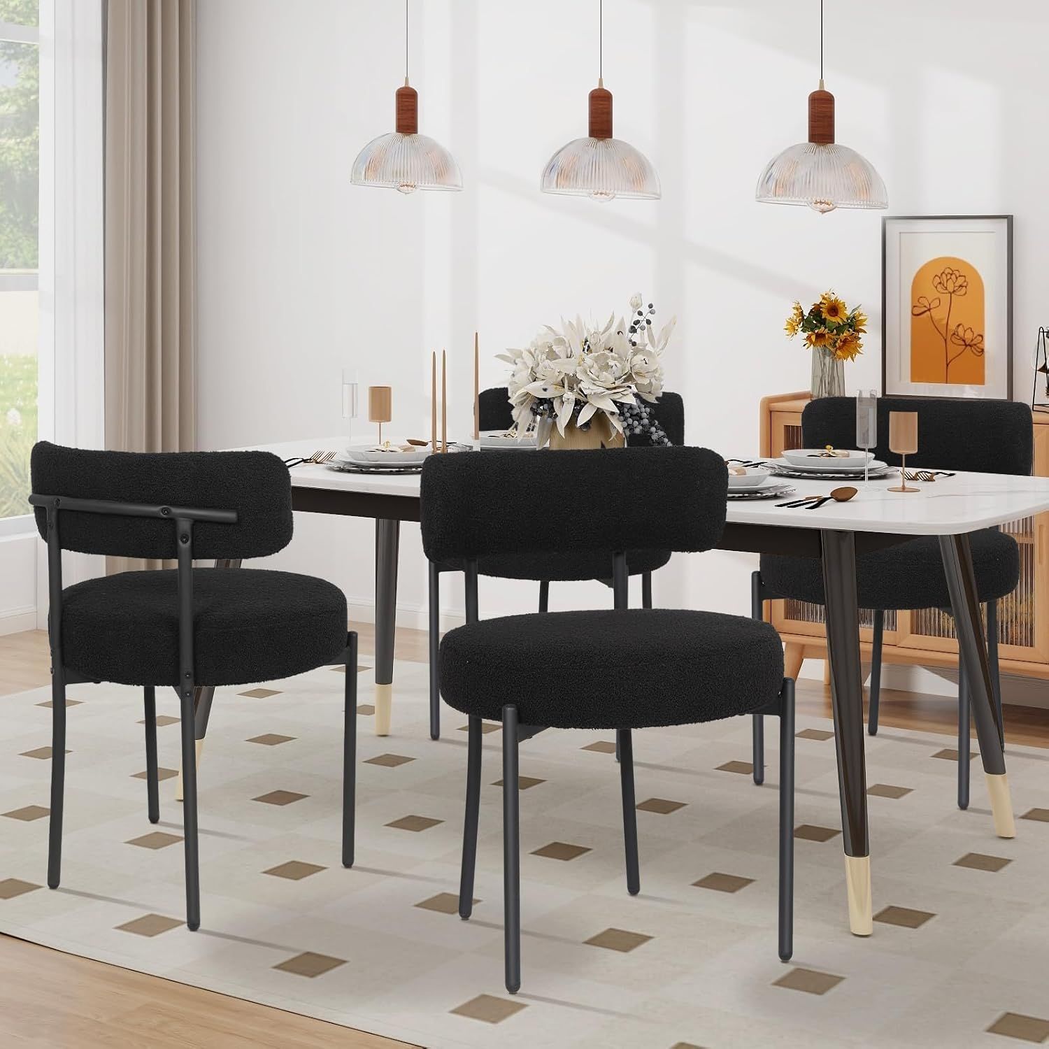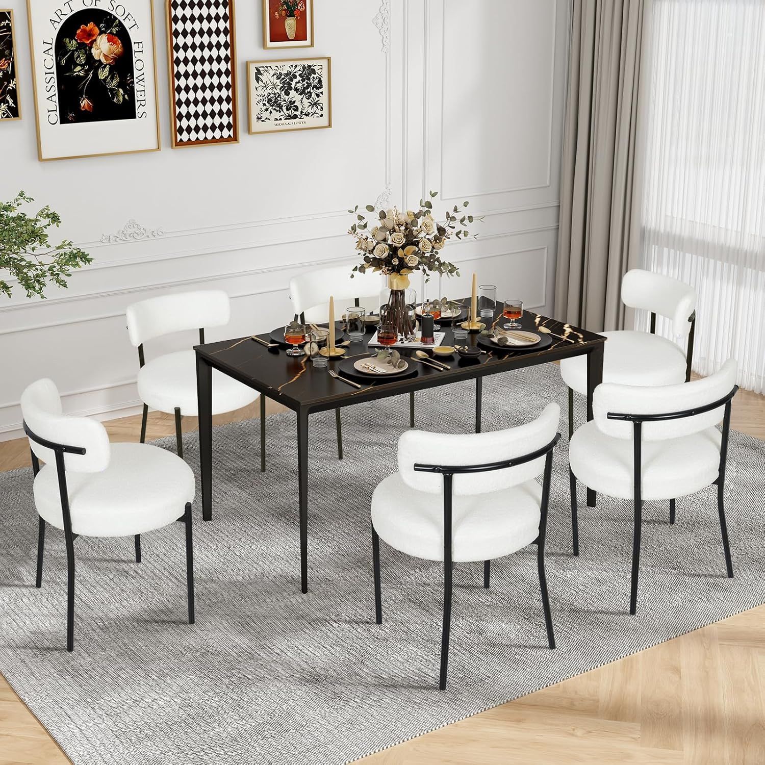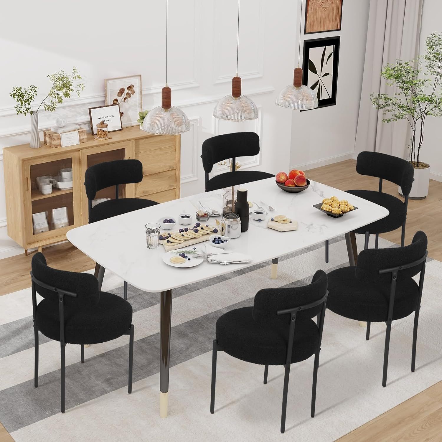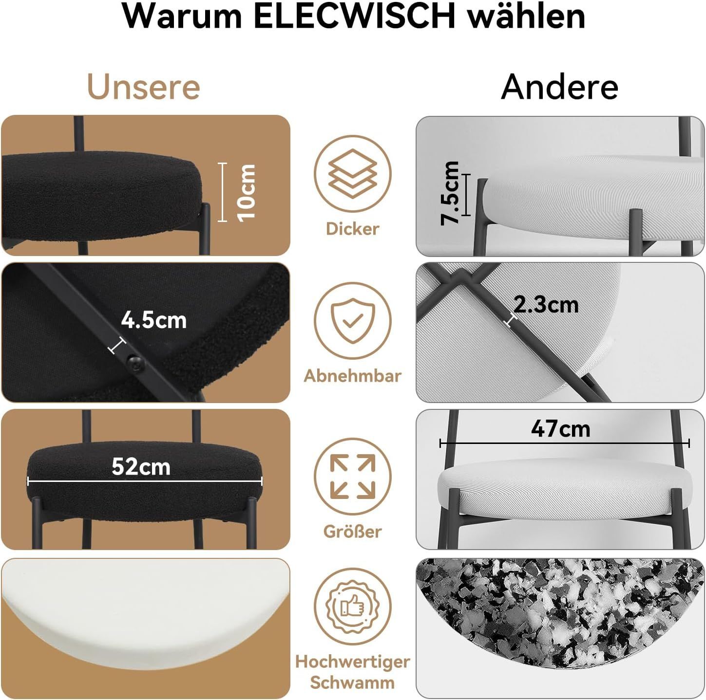2/4/6er Sets Esszimmerstühle Polsterstuhl mit Rücklehne Wolle Boucle
