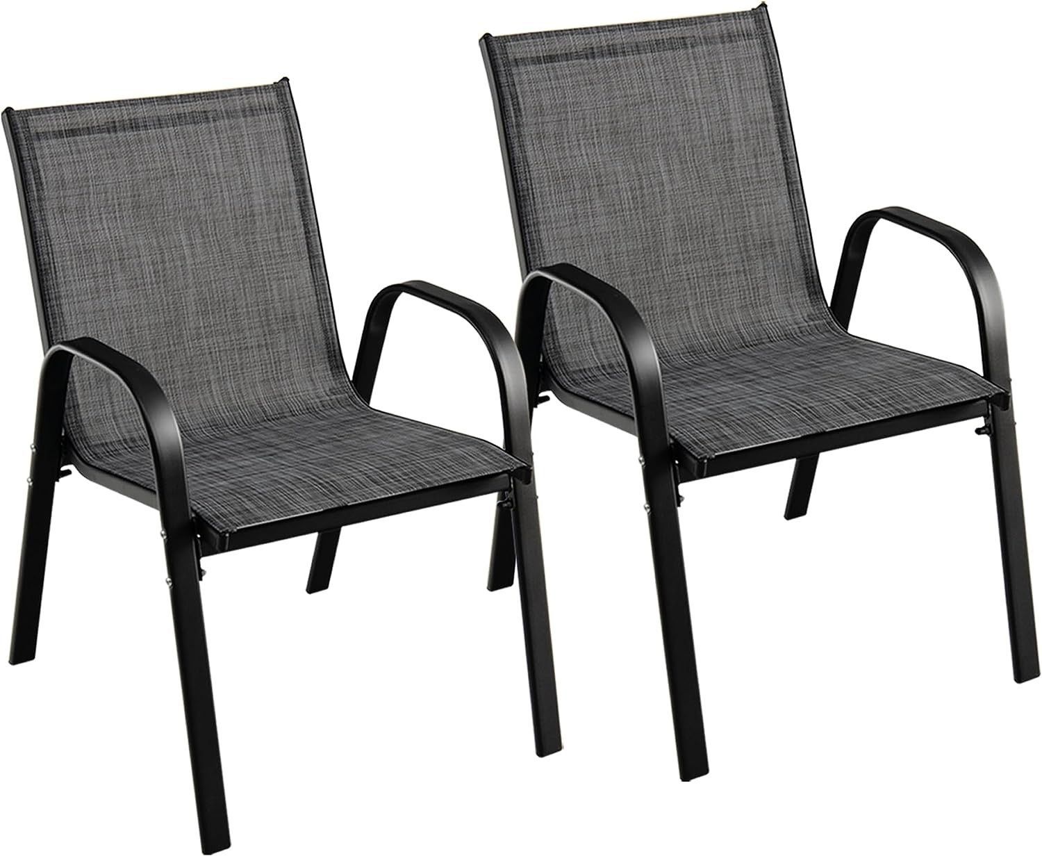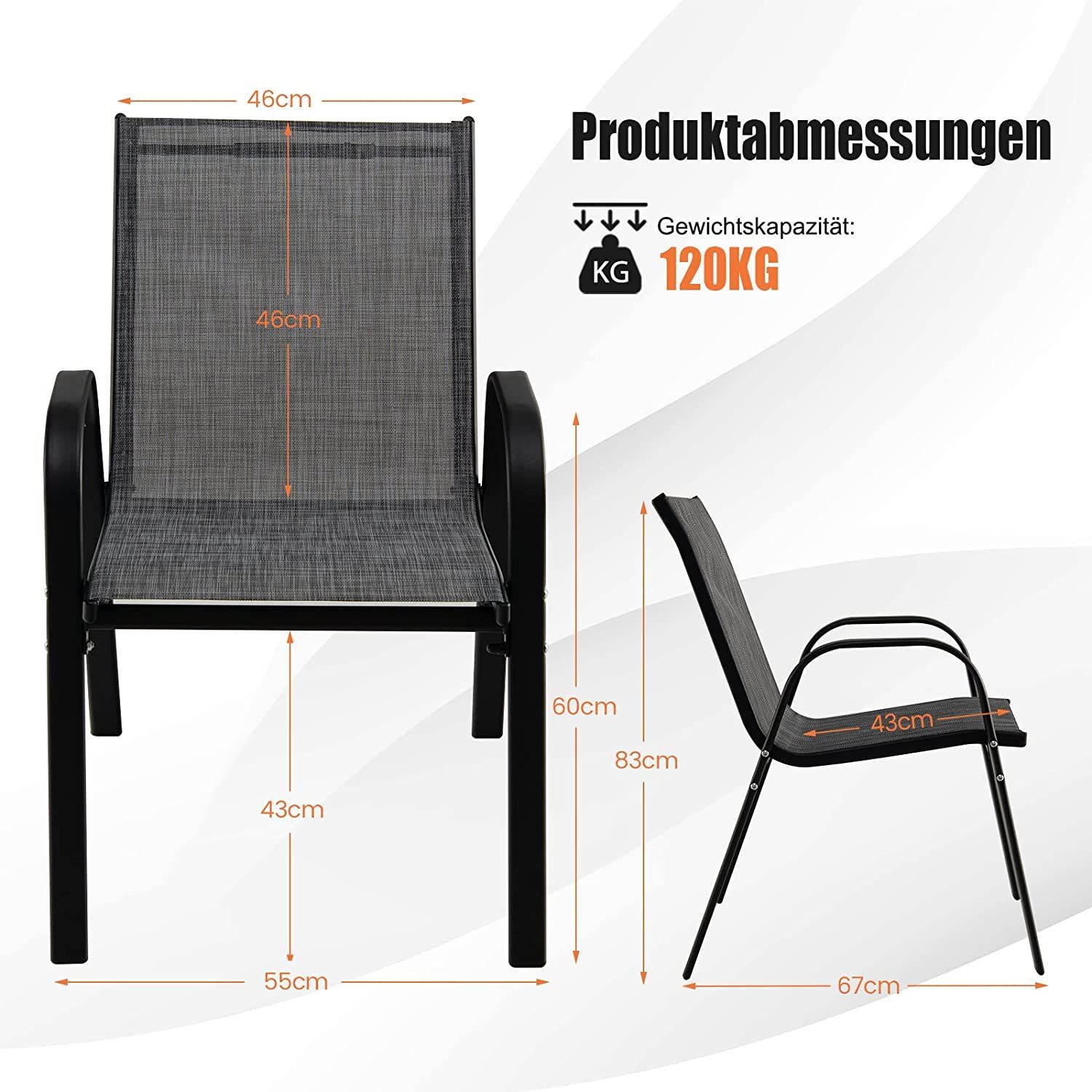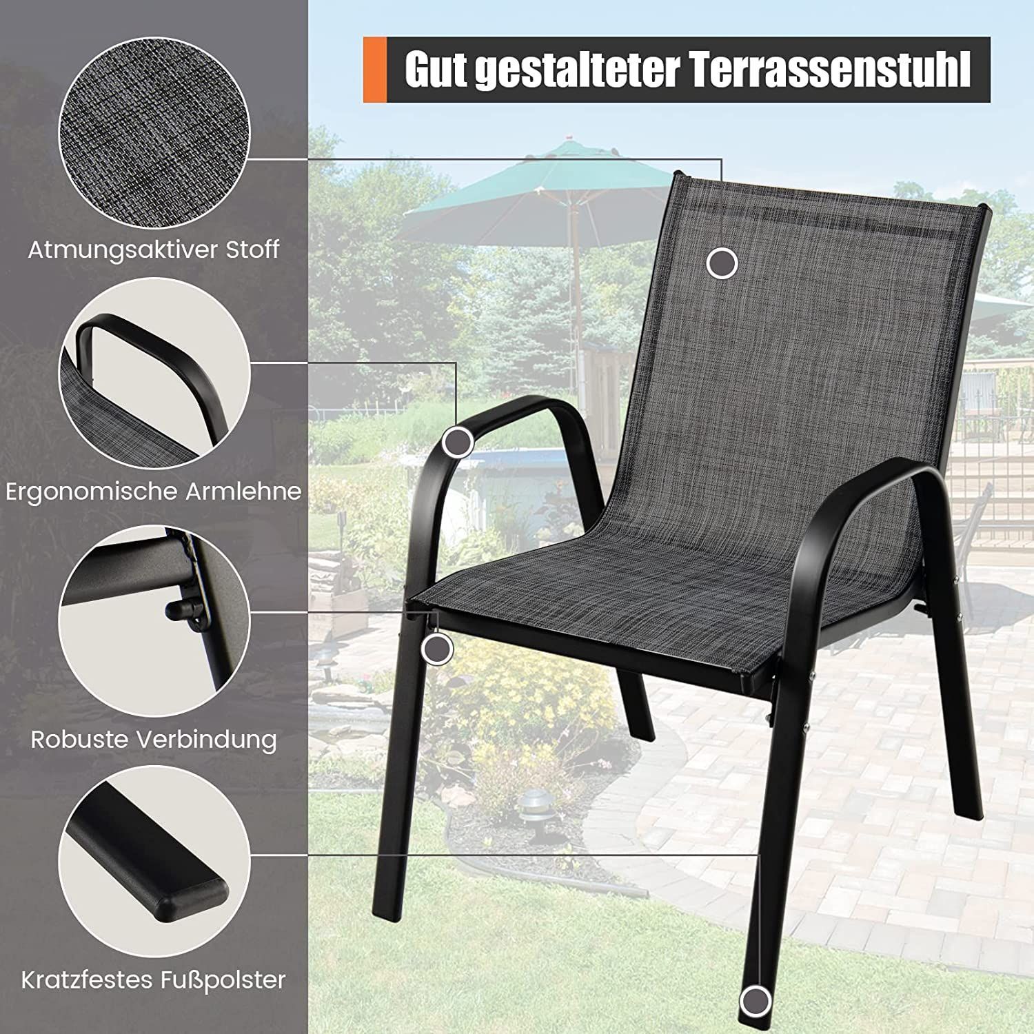 2/4er Set Gartenstühle stapelbar, Stapelstühle aus Textilene und Metallgestell
