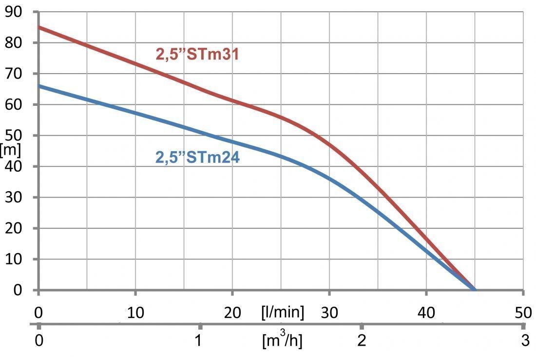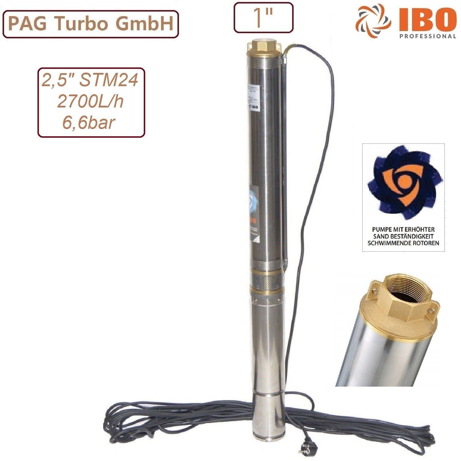 2,5" STM24 Tiefbrunnenpumpe sandverträglich bis 5% 370W - 6,6bar - 2700l/ h