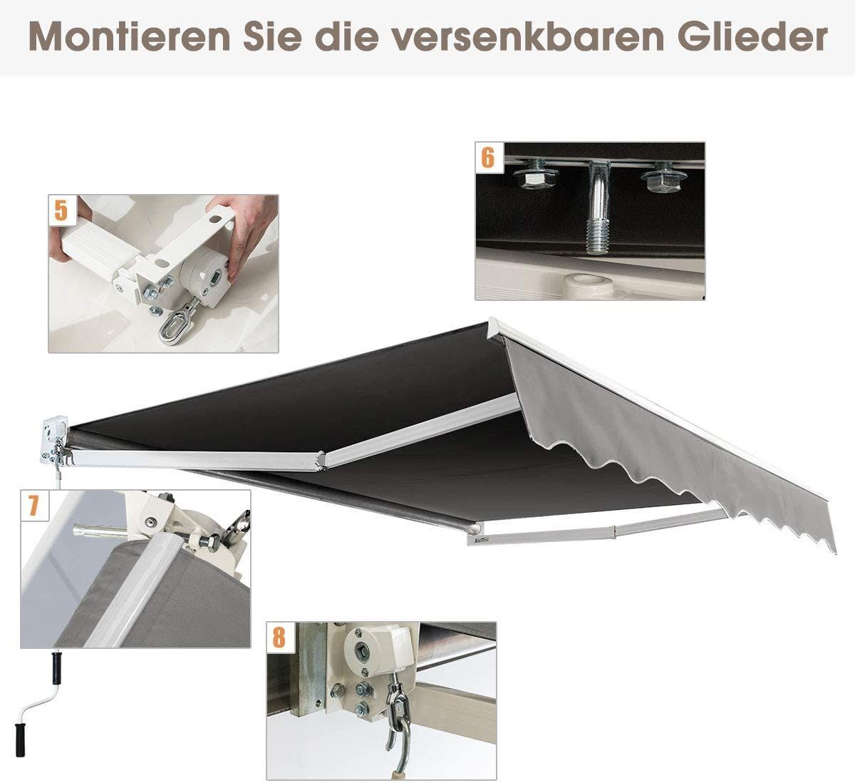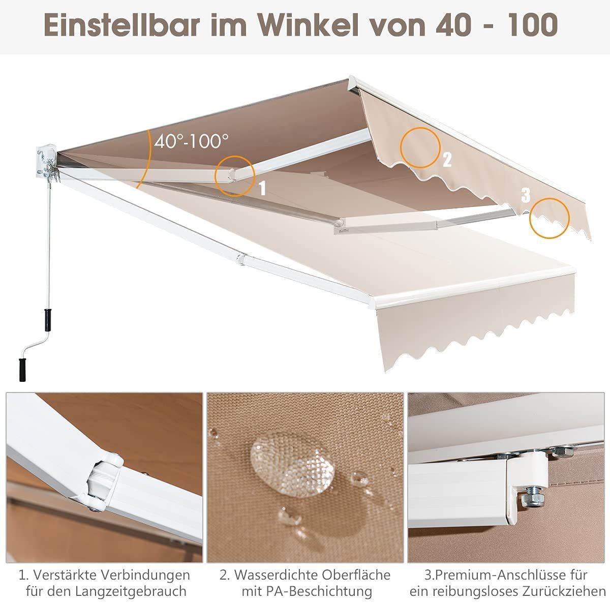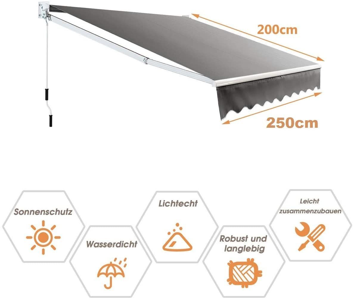 2,5 x 2 m Gelenkarmmarkise Sonnenmarkise Balkonmarkise Aluminiumrahmen und -kurbel
