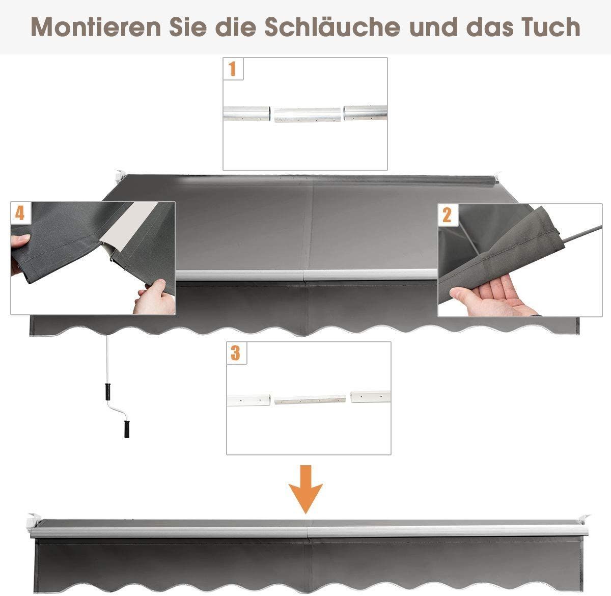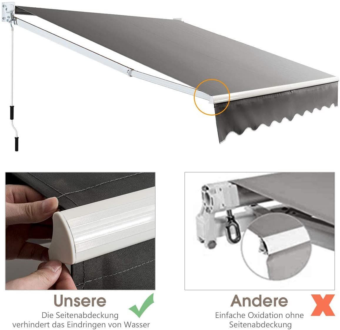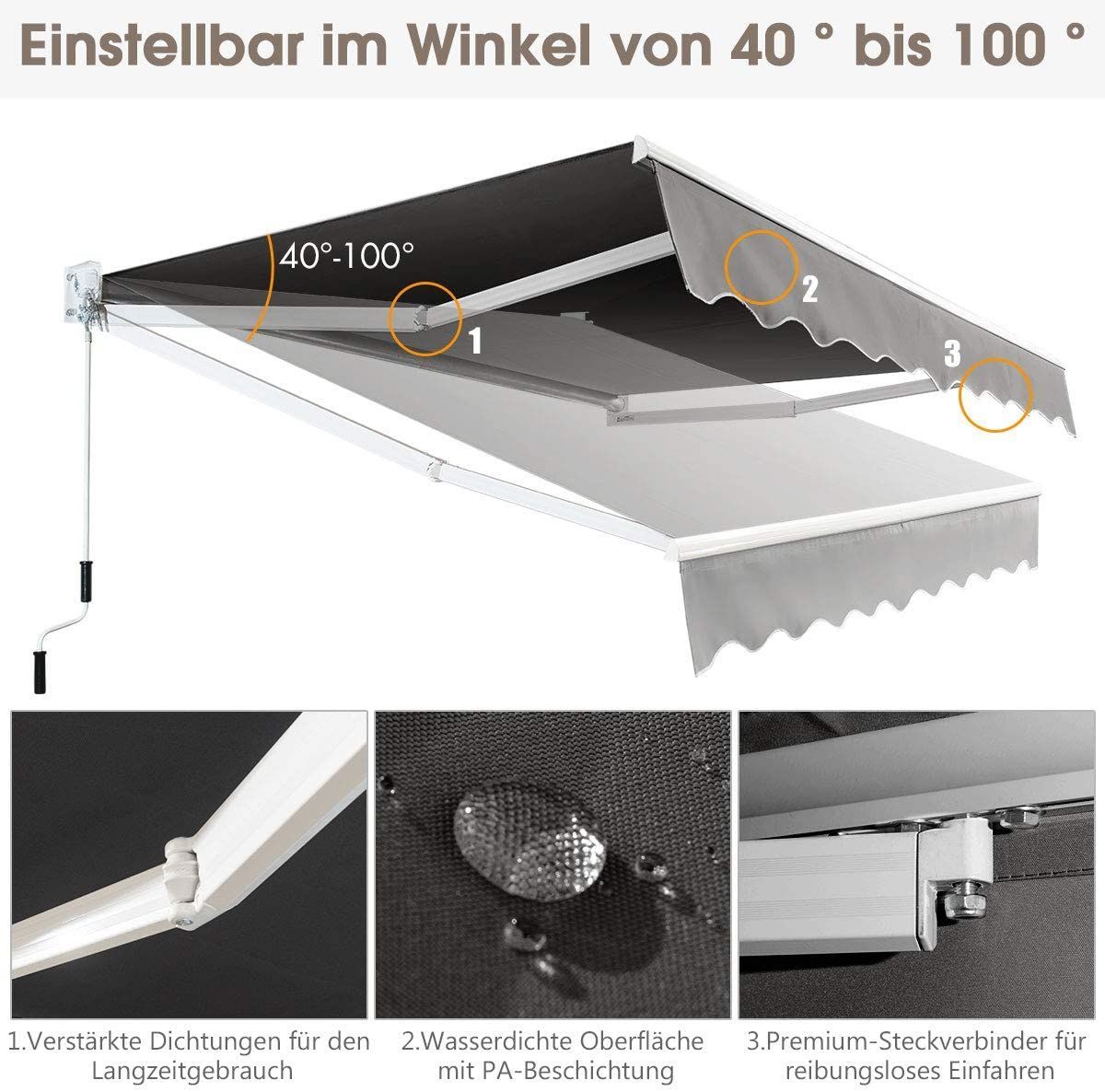 2,5 x 2 m Gelenkarmmarkise Sonnenmarkise Balkonmarkise Aluminiumrahmen und -kurbel