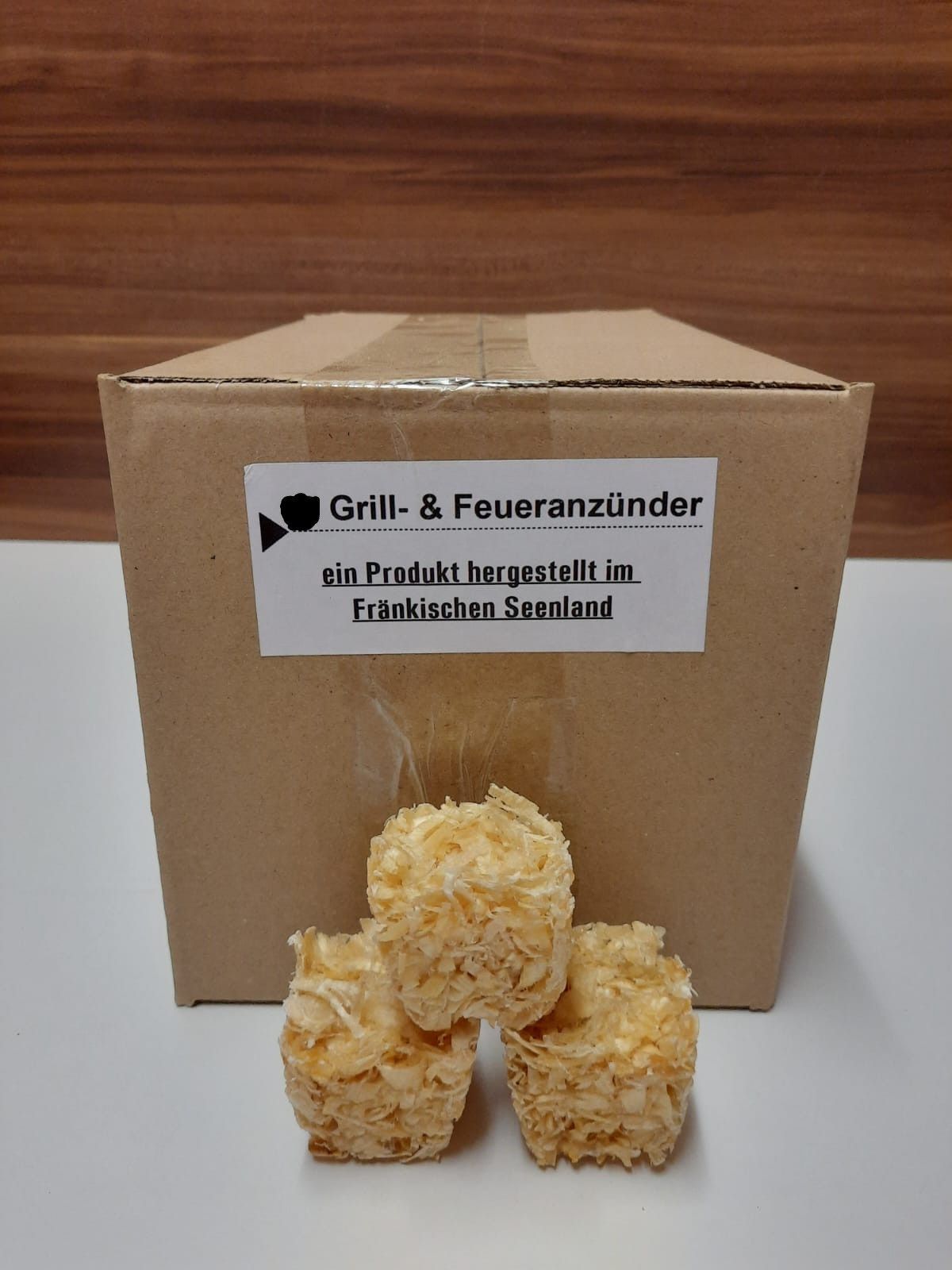 Guten Tag, Verkauft werden regional hergestellte Grill - & Feueranzünder aus Holzspäne, Hobelspäne und Wachs. Ein Anzünder reicht pro Heizvorgang, durch seine sehr gute Brenndauer von ca. 10 Minuten. Dieser natürliche Feueranzünder garantiert das einfache sichere und bequeme Anzünden von Feuer i