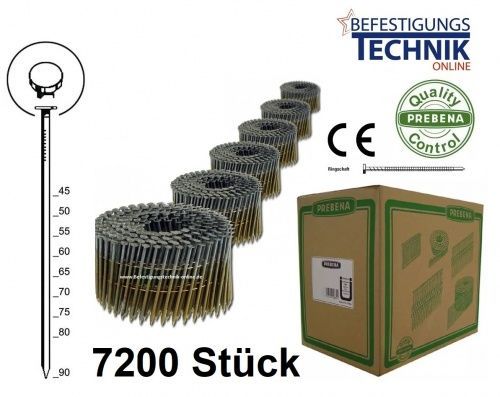 Prebena 2,5x70mm Ring verzinkt 16° Coilnägel für Coilnagler Prebena Paslode BeA Bostitch 7,2M