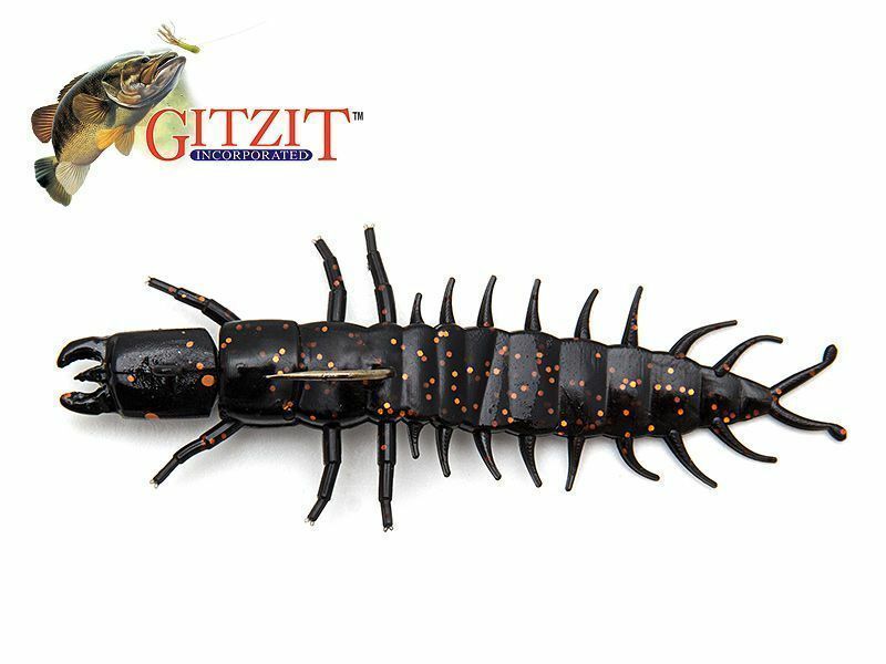 Der 2.8 Hellgrammite von Gitzit ist die perfekte Nachahmung der Dobsonfly Larve. In unseren Breiten imitiert der Hellgrammite im allgemeinen eine Larve von Insekten, wie beispielsweise die der Köcherfliege. Der Hellgrammite kommt vor allem in Flüssen und Bächen auf große Forellen und Döbel zum Einsa