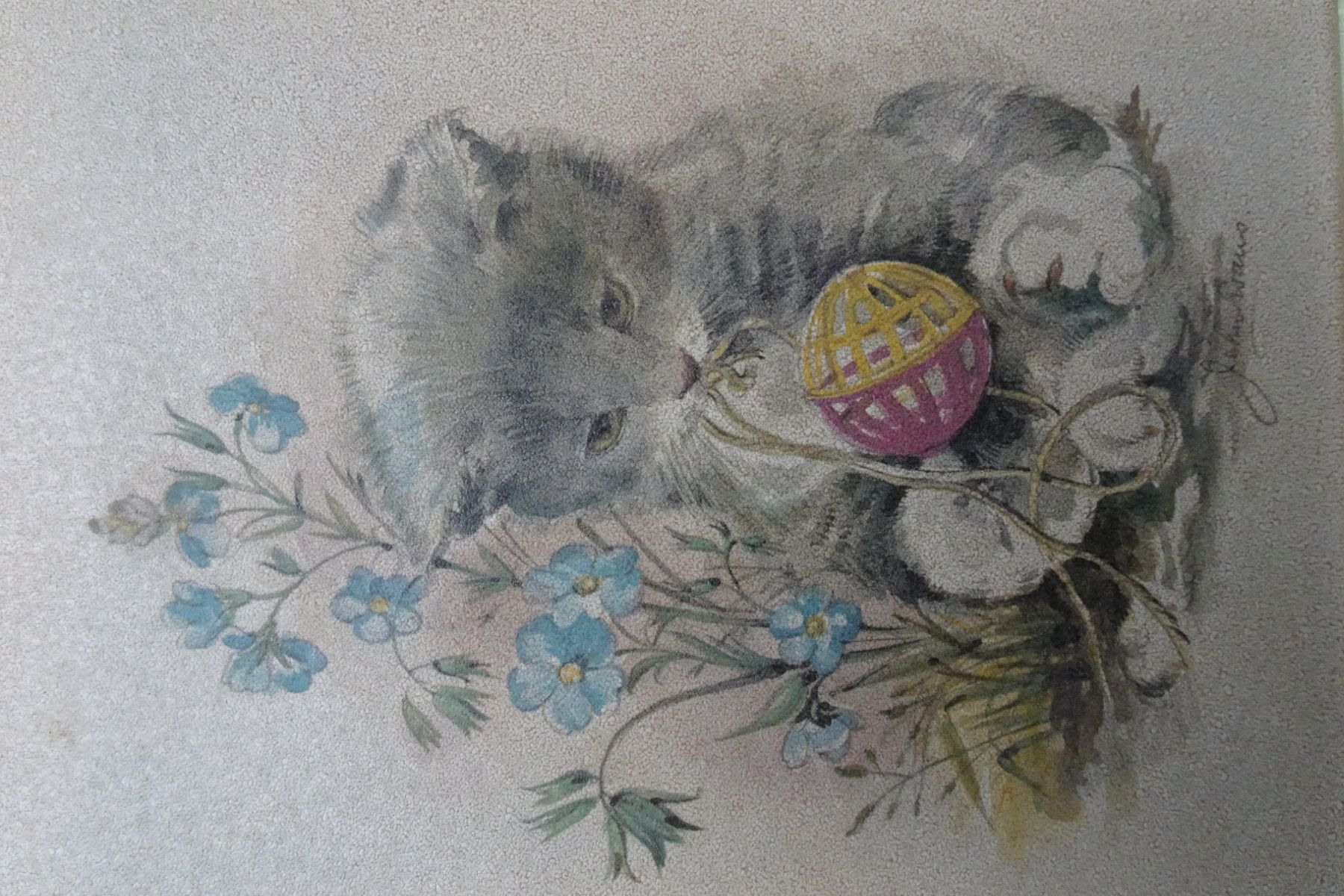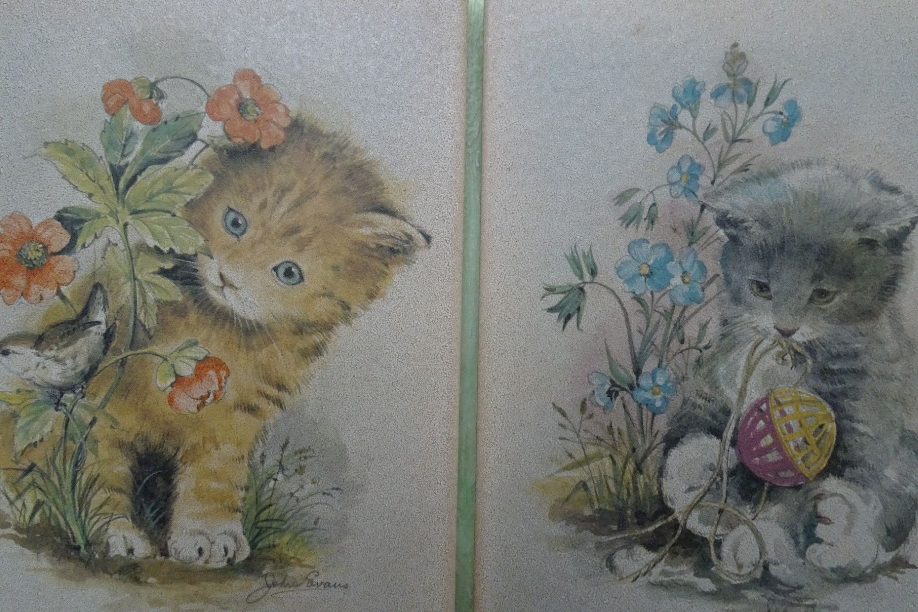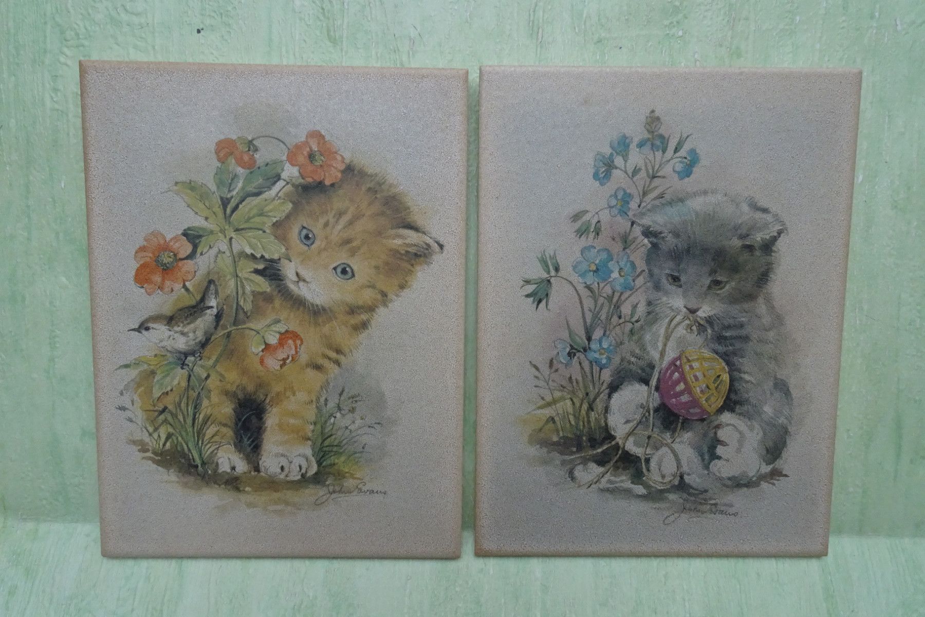 2 alte Fliesen Kacheln Wandbilder AWS Keramik Germany John Evans Katzen 19,5x15cm