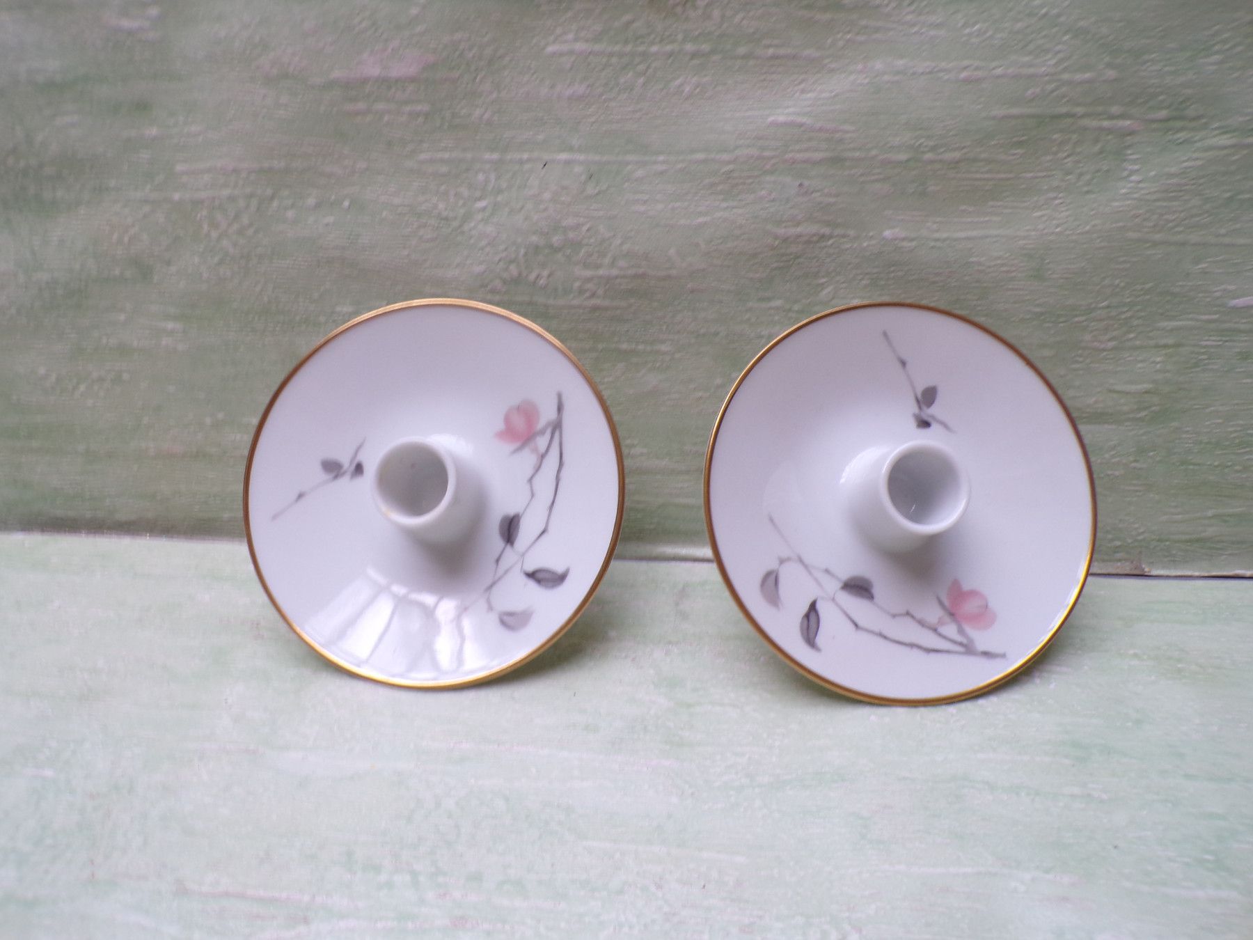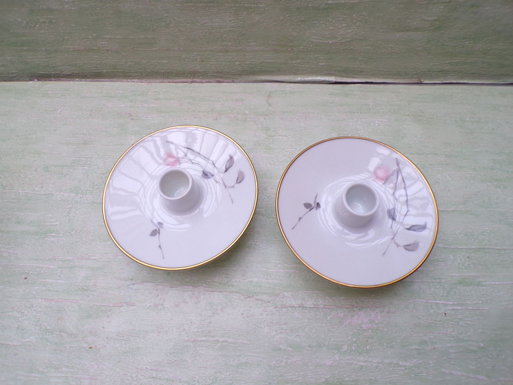 2 alte Kerzenleuchter Rosenthal weiß Goldrand Blütenmotiv je 5 x 11cm