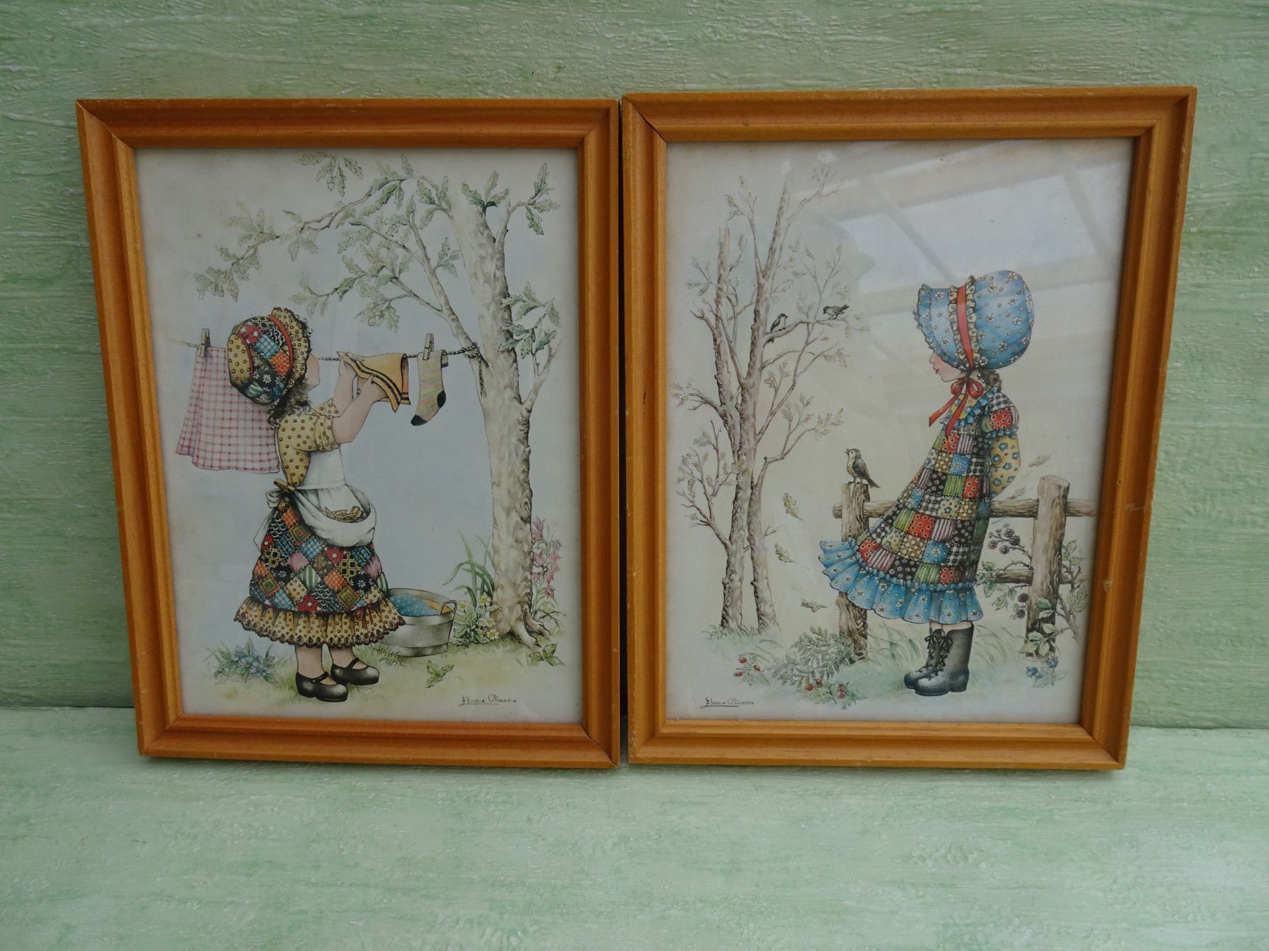 2 alte Kinderbilder 70er Jahre Elena Olivera Patchworklook 26 x 20 cm RAR !