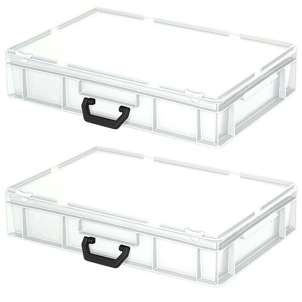 2 Aufbewahrungskoffer / Kunststoffkoffer, LxBxH 600x400x130 mm, 23 Liter, weiß