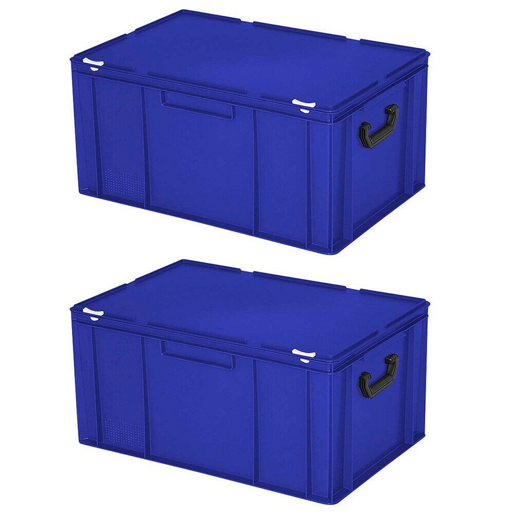 2 Aufbewahrungskoffer/ Kunststoffkoffer, LxBxH 600x400x330 mm, 63 Liter, blau