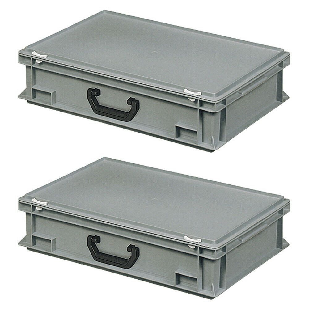 2 Aufbewahrungskoffer, LxBxH 600x400x165 mm, 27 Liter, grau, PE-HD