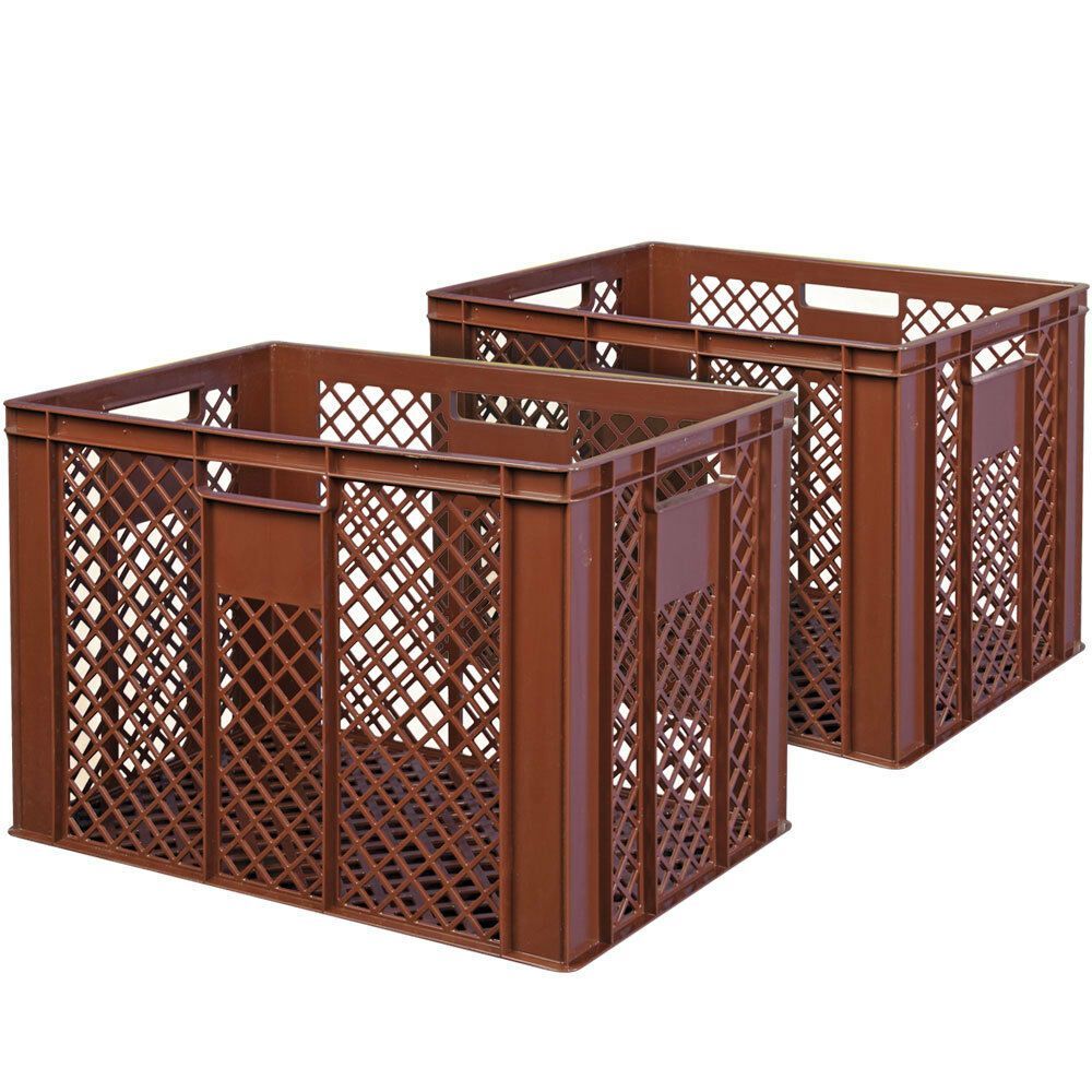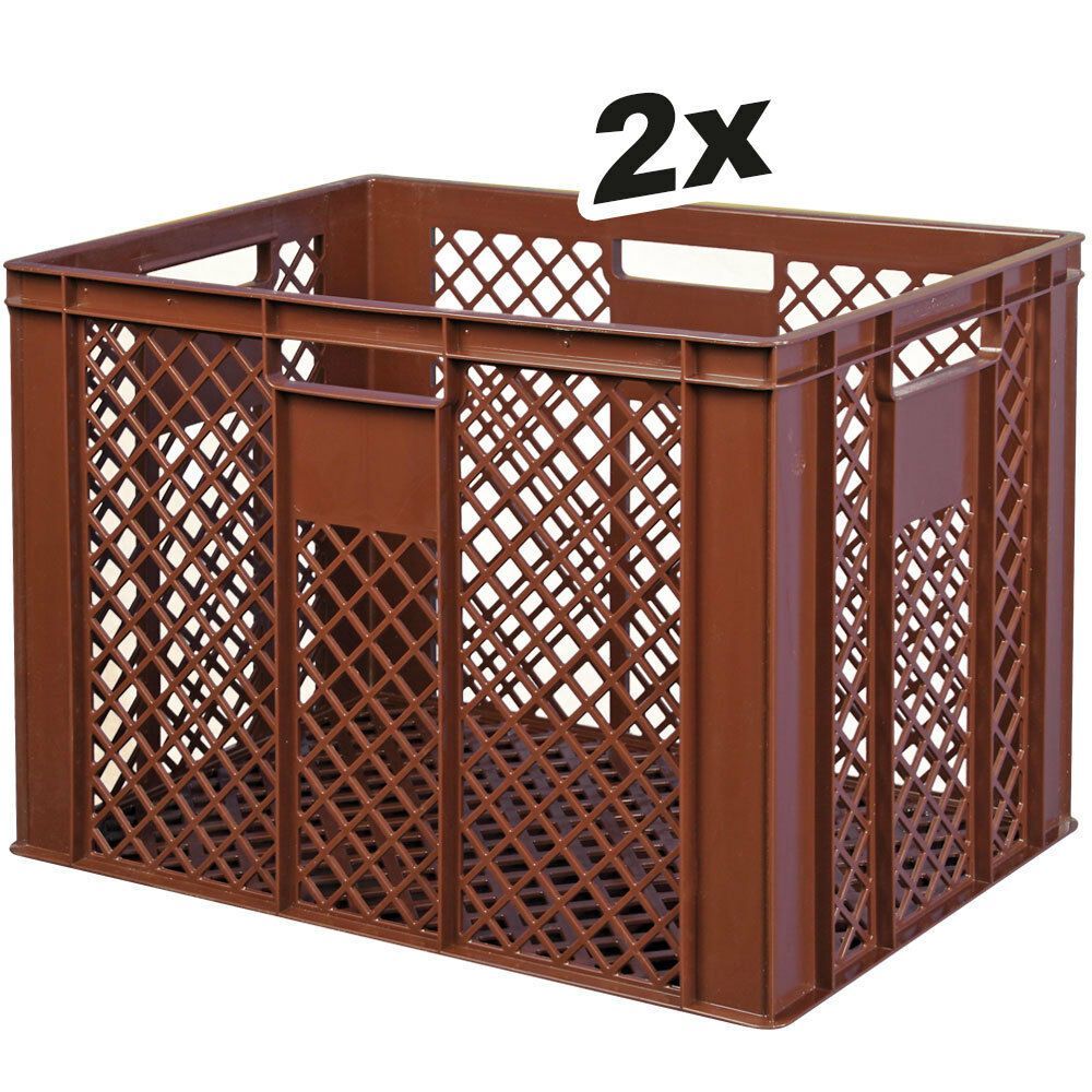 2 Bäckerkisten / Eurobehälter, LxBxH 600 x 400 x 410 mm, braun, lebensmittelecht