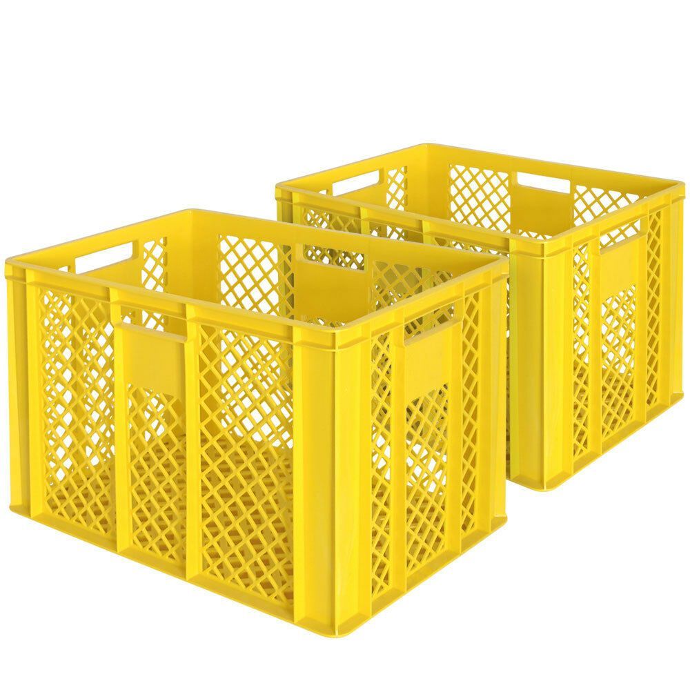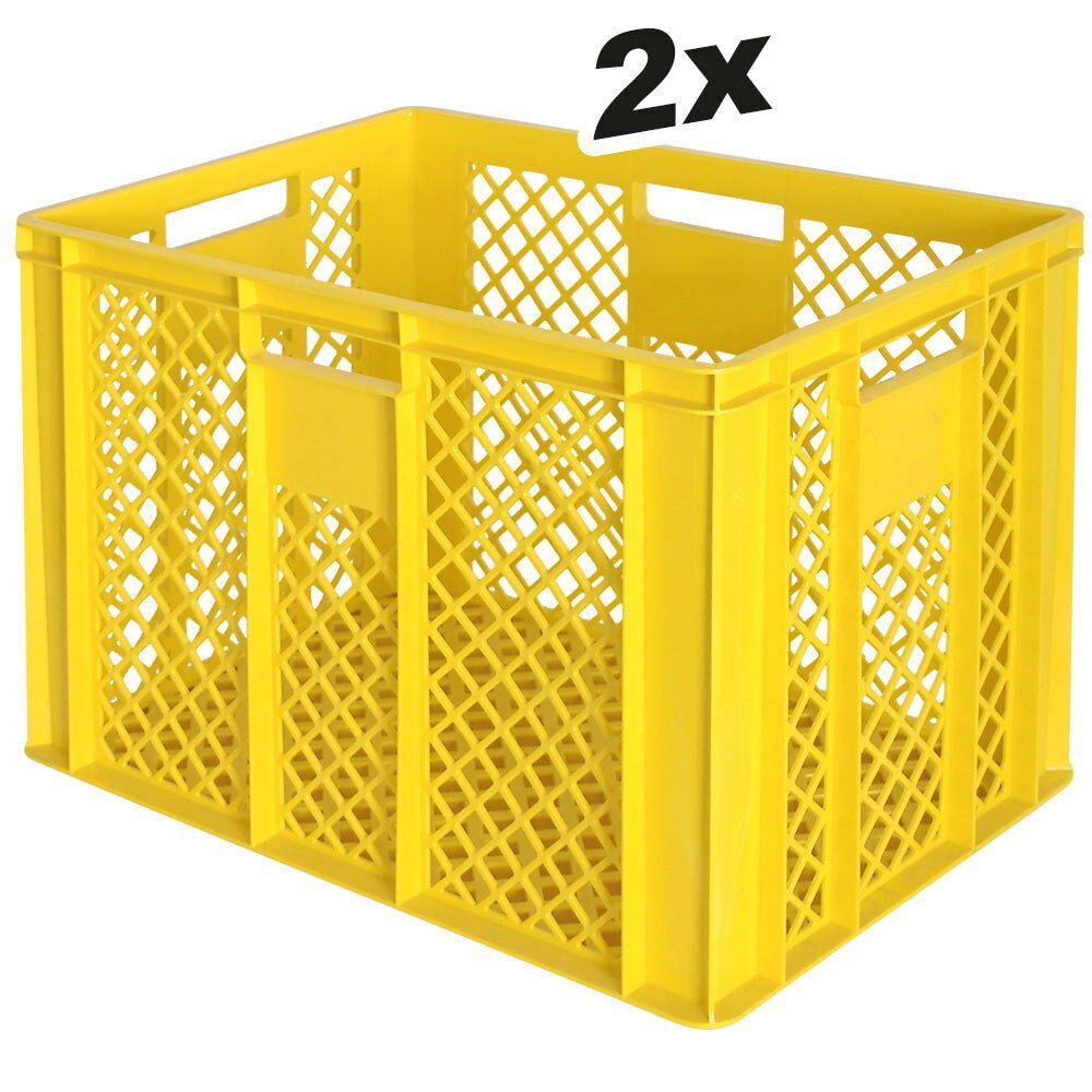 2 Bäckerkisten / Eurobehälter, LxBxH 600 x 400 x 410 mm, gelb, lebensmittelecht