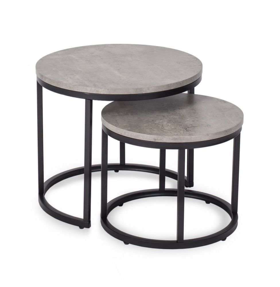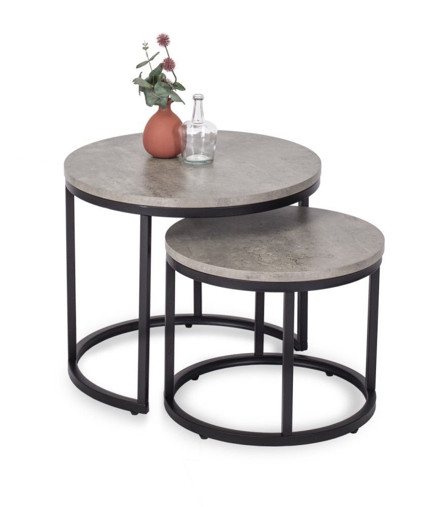 2 Beistelltische Ø 53/43 Tischset Couchtisch Ablagetisch Beton Schwarz