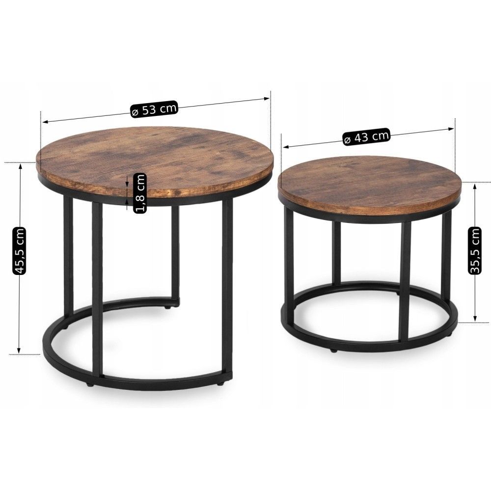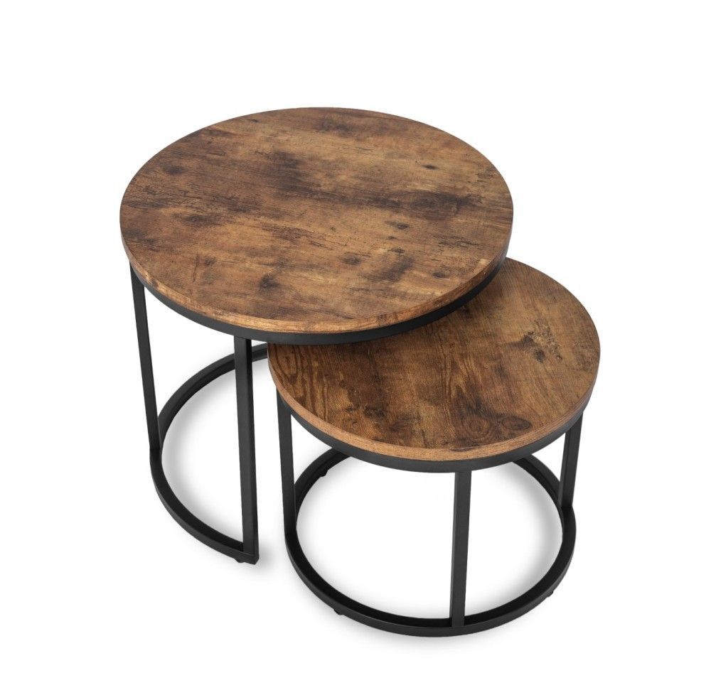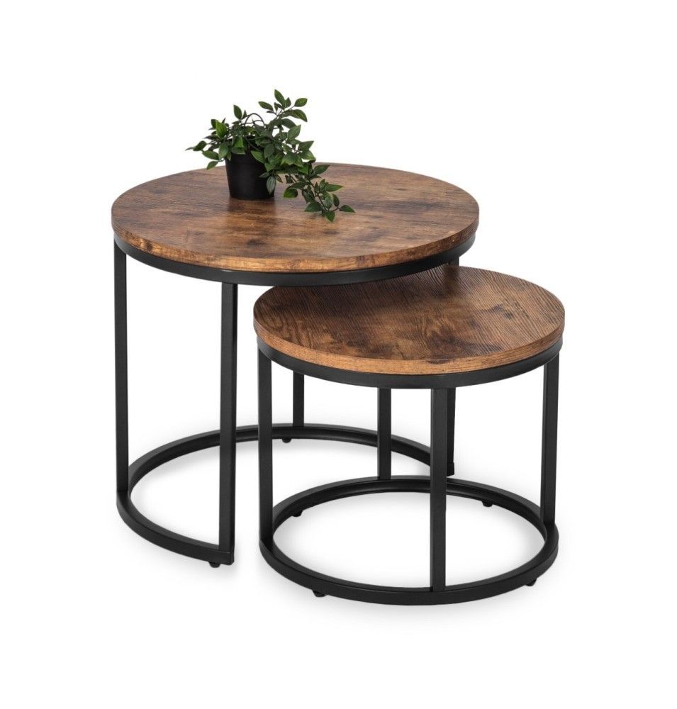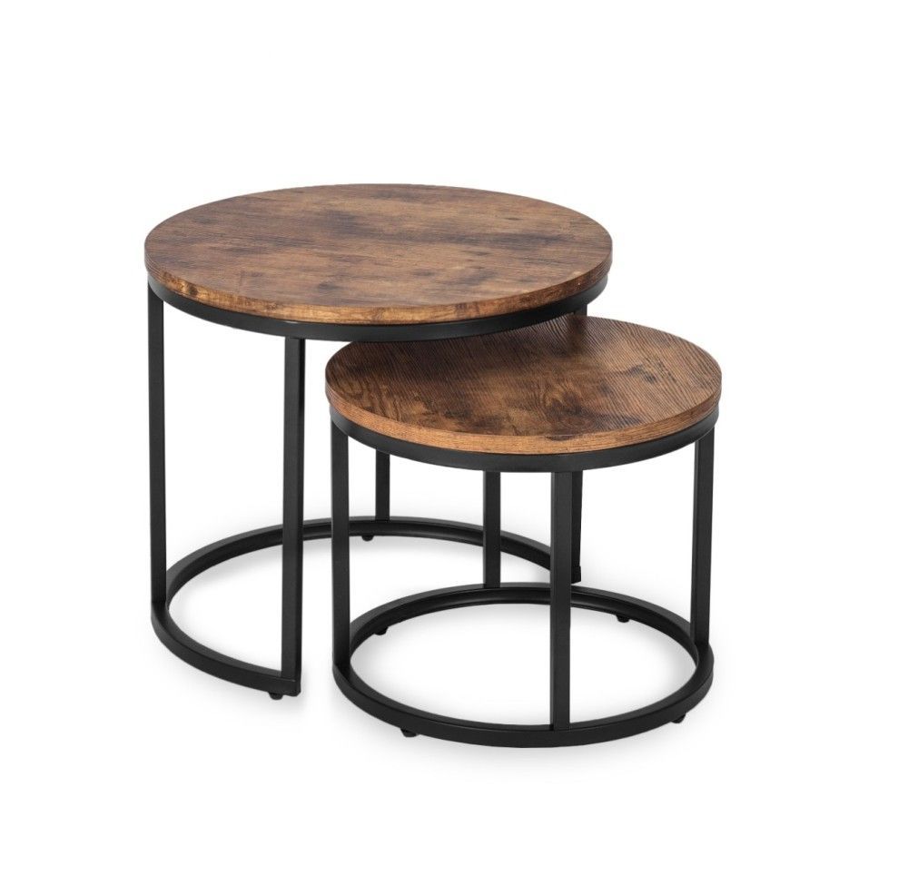 2 Beistelltische Ø 53/43 Tischset Couchtisch Ablagetisch Eiche Rustikal Schwarz