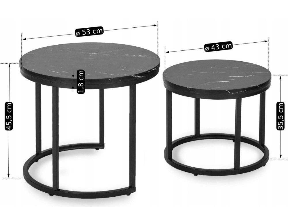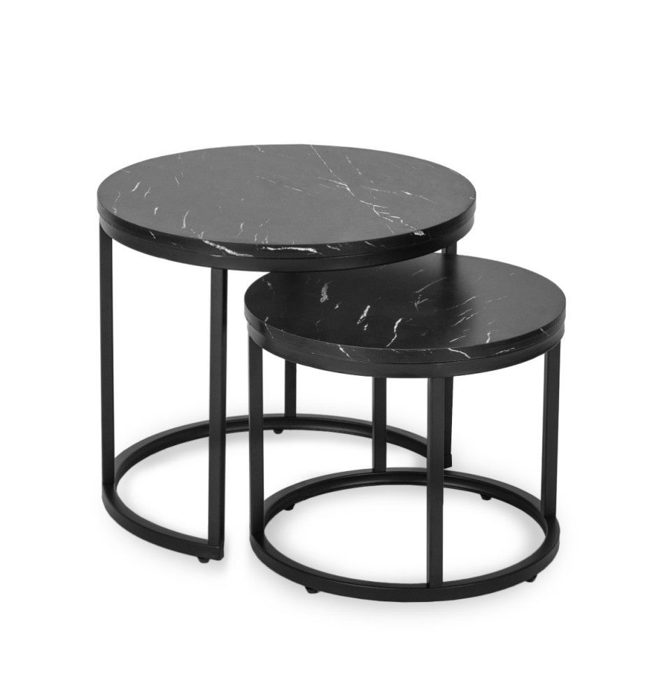 2 Beistelltische Ø 53/43 Tischset Couchtisch Ablagetisch Marmorschwarz Schwarz