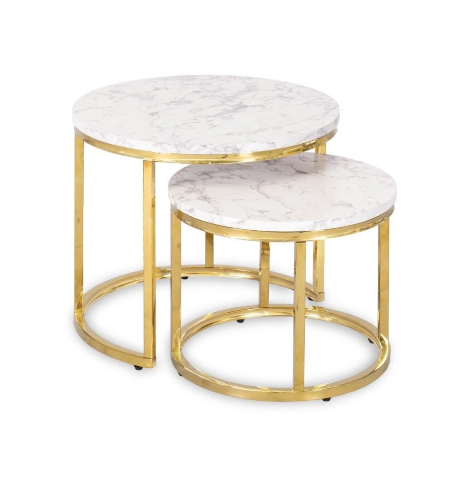2 Beistelltische Ø 53/43 Tischset Couchtisch Ablagetisch Marmorweiß Gold