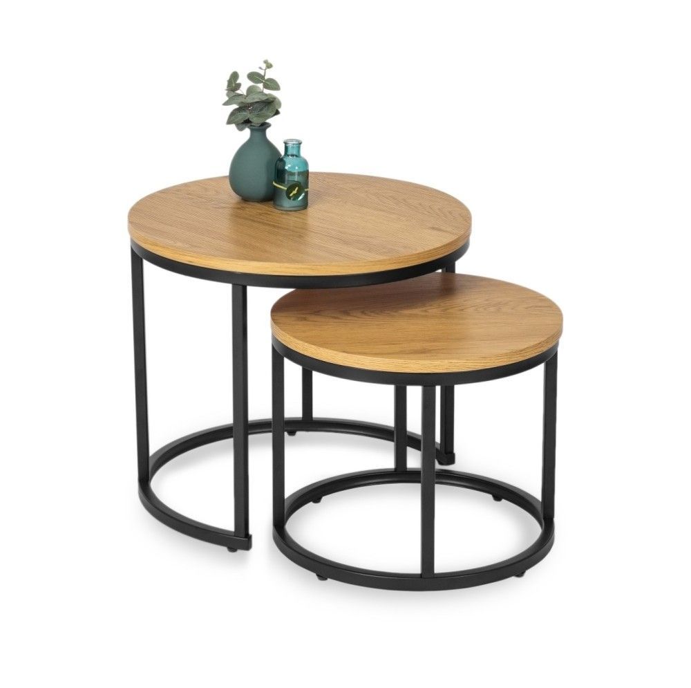 2 Beistelltische Ø 53 und 43 Tischset Couchtisch Ablagetisch Eiche Schwarz