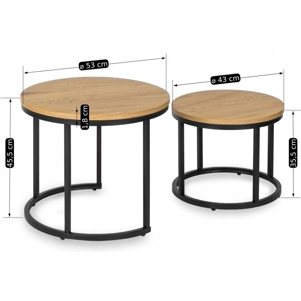 • 2 Beistelltische Ø 53/43 Tischset Couchtisch Ablagetisch Eiche-Schwarz Schwarz