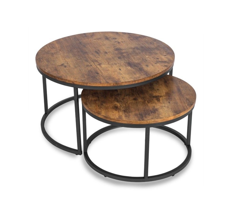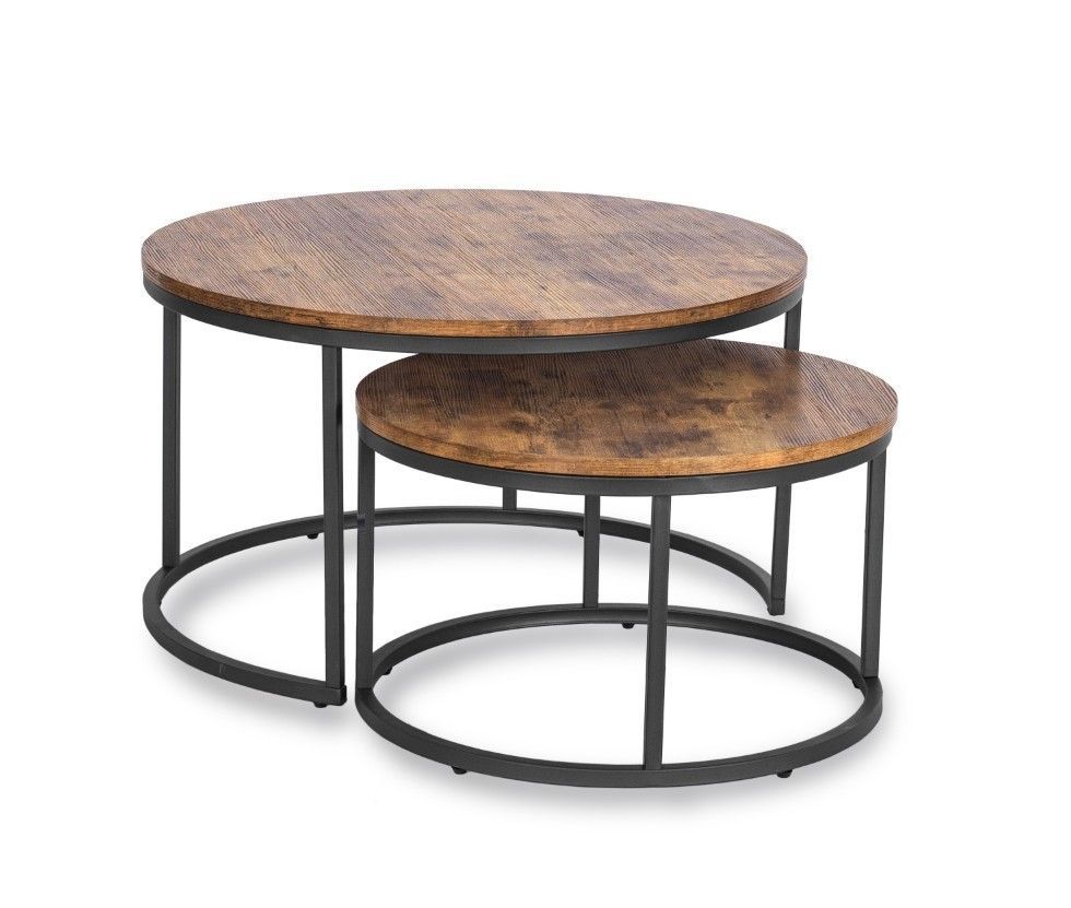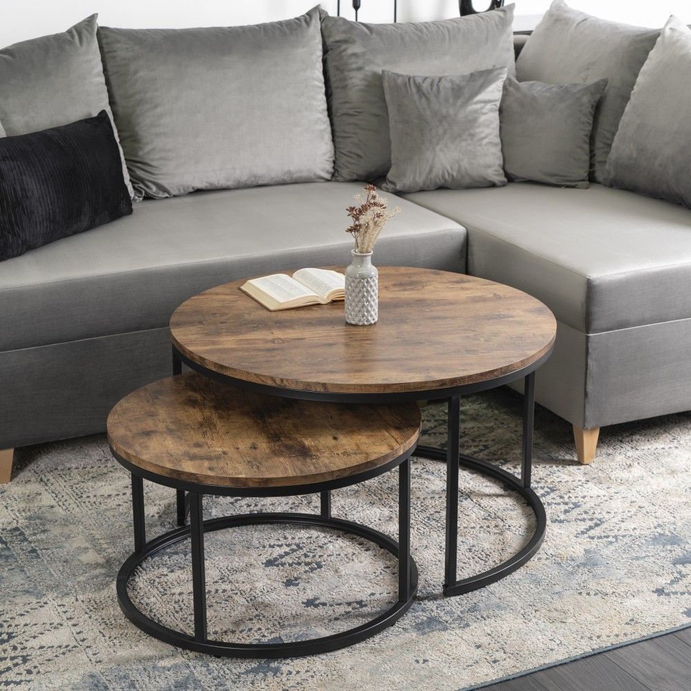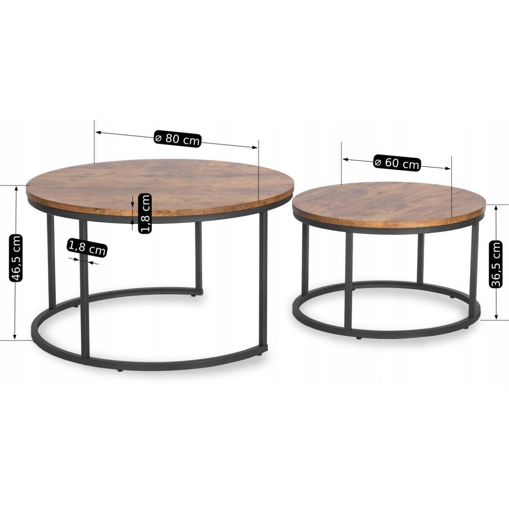2 Beistelltische Ø 80/60 Tischset Couchtisch Ablagetisch Eiche Rustikal Schwarz