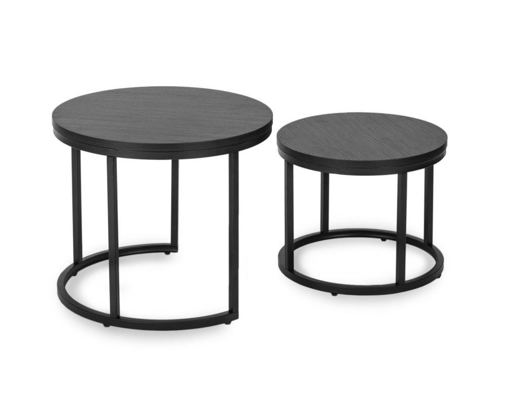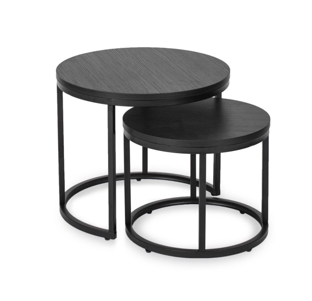 2 Beistelltische Ø 80/60 Tischset Couchtisch Ablagetisch Eiche-Schwarz Schwarz