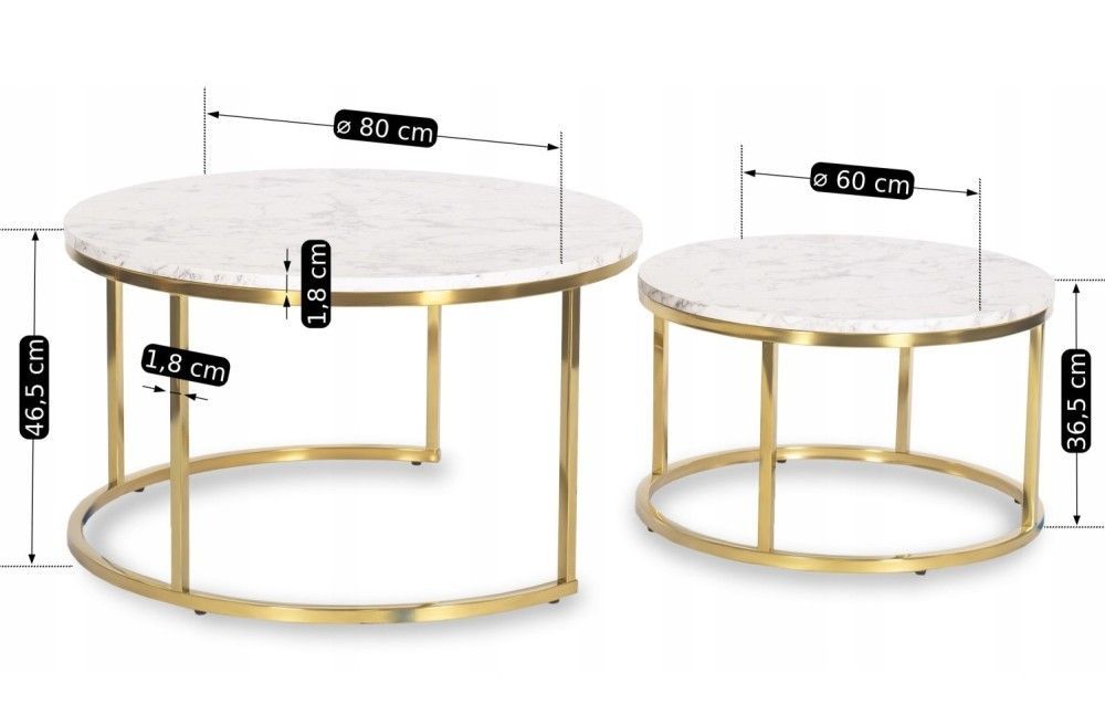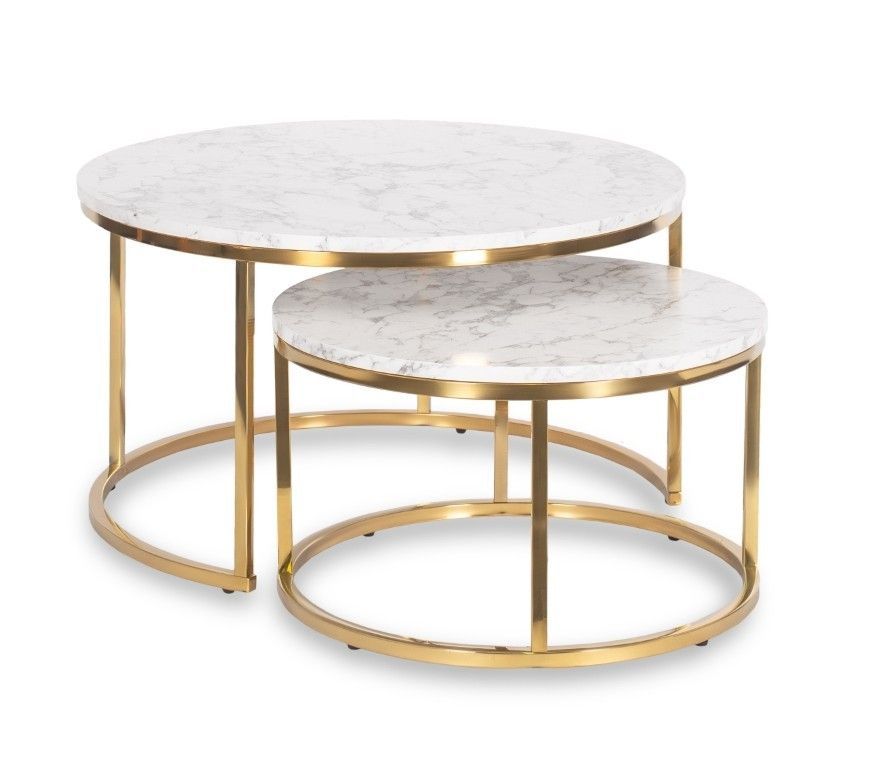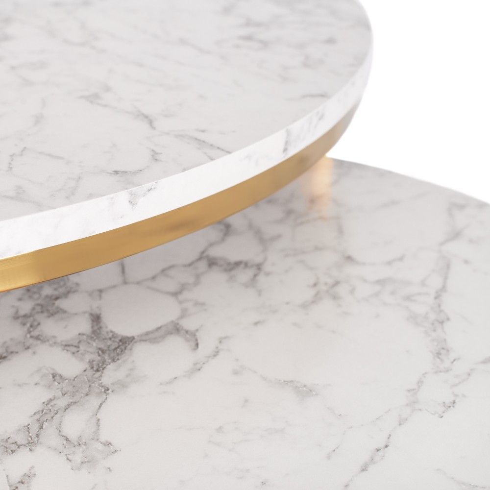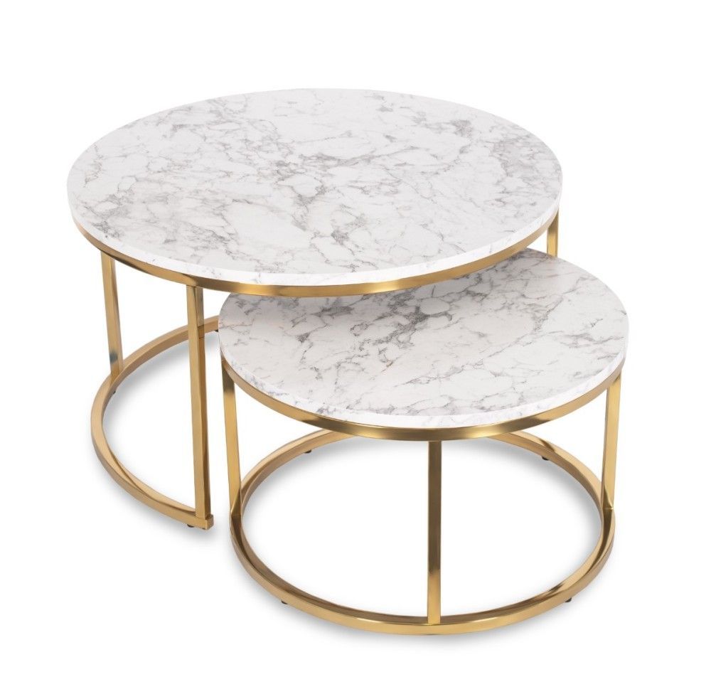 2 Beistelltische Ø 80/60 Tischset Couchtisch Ablagetisch Marmorweiß Gold