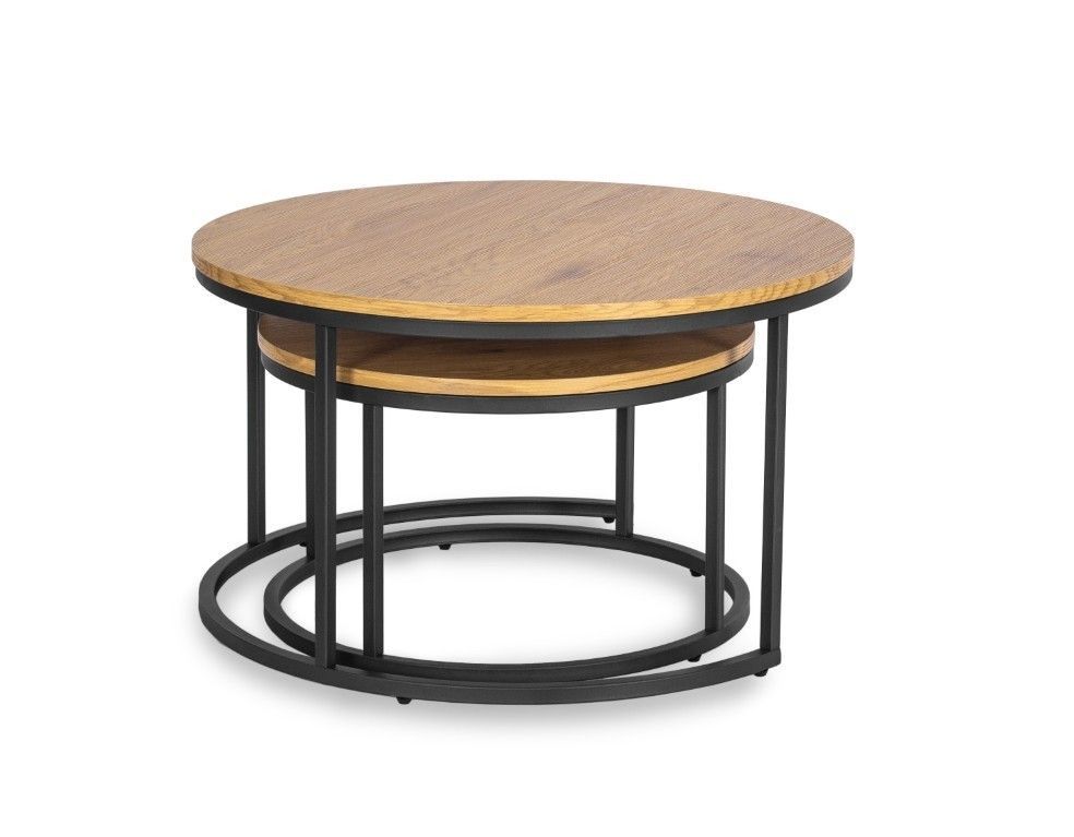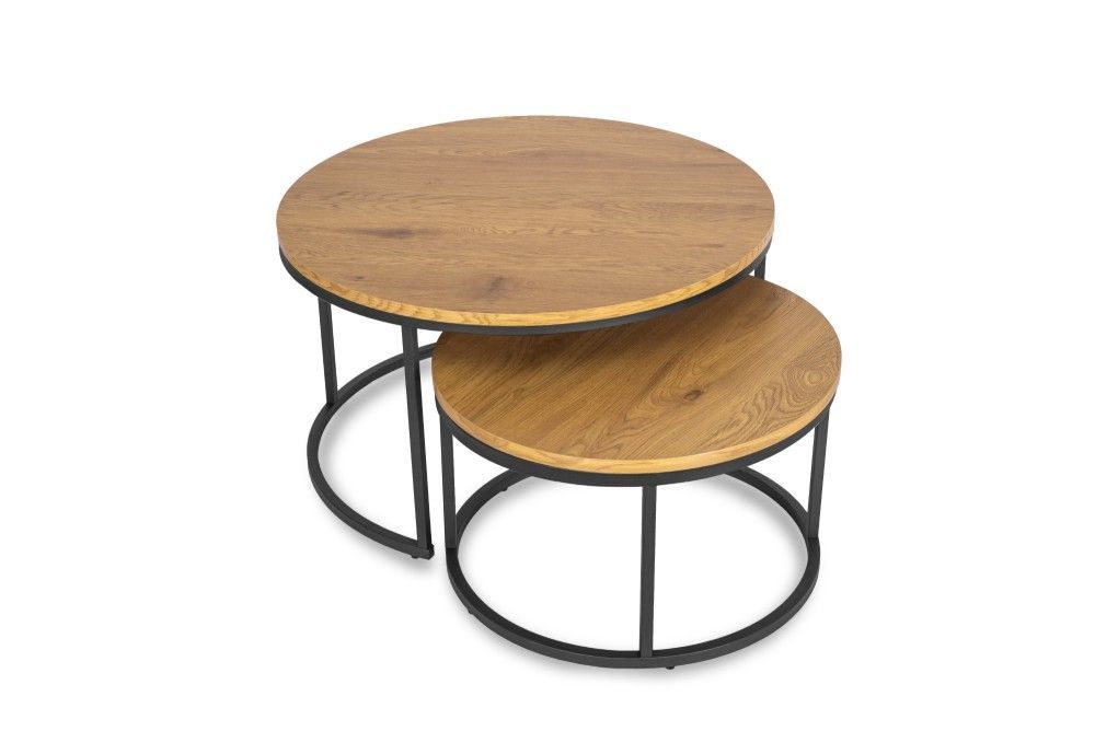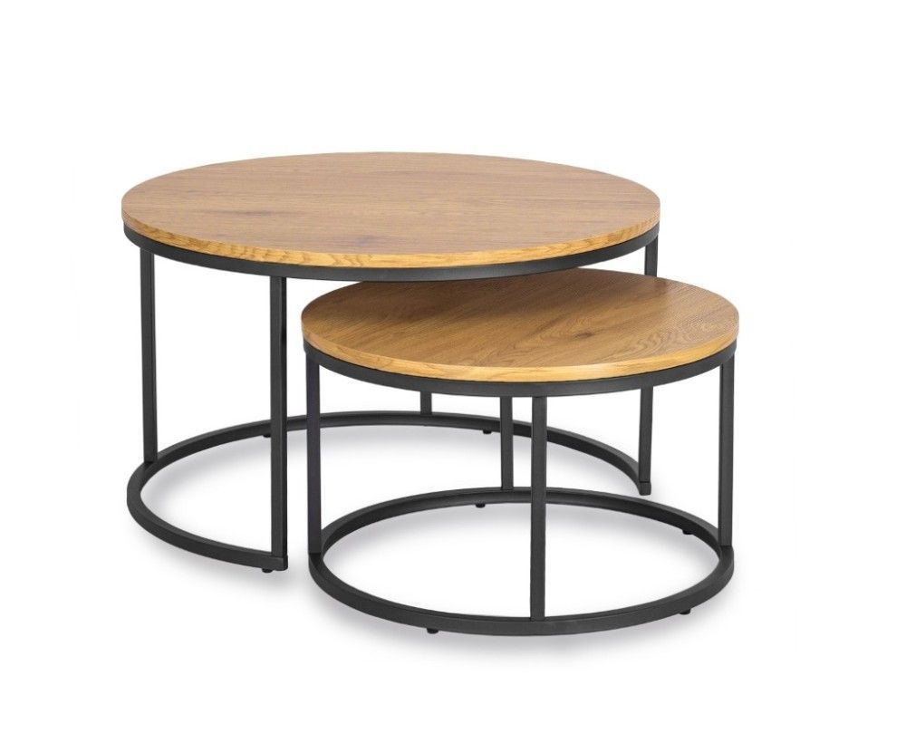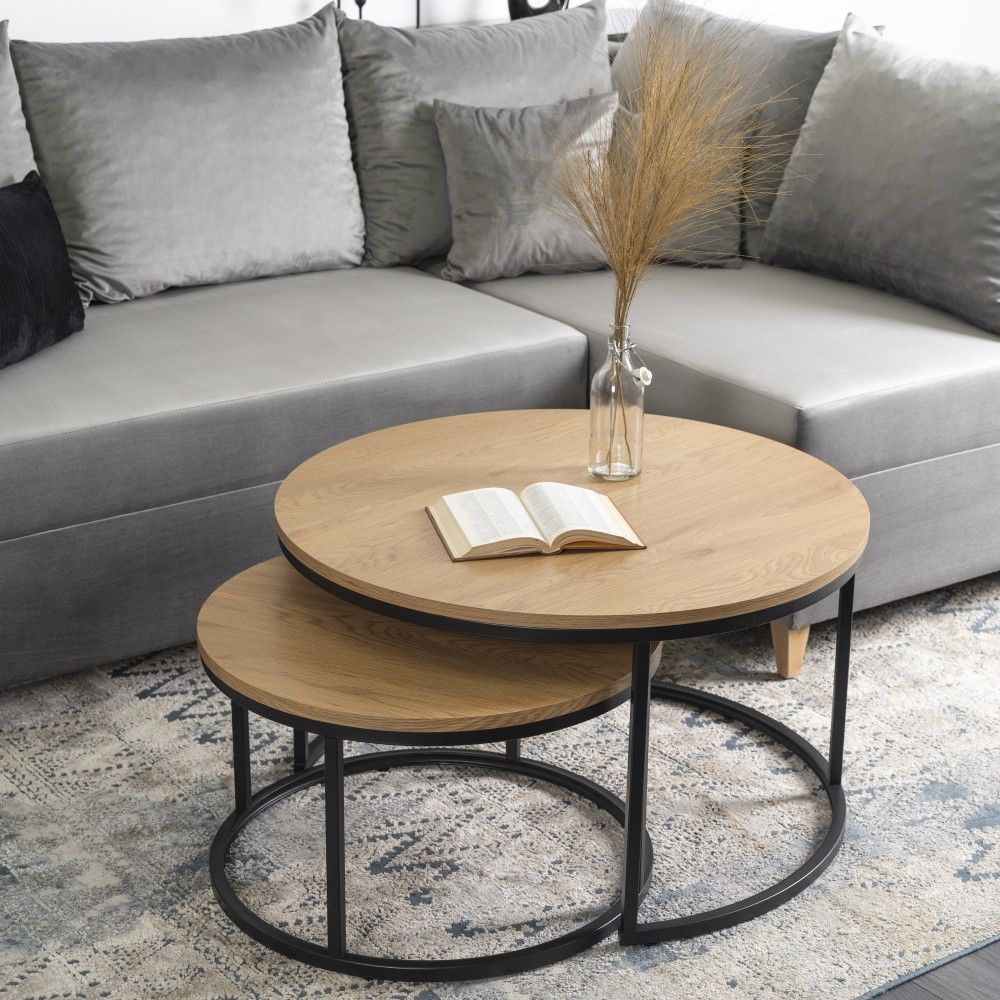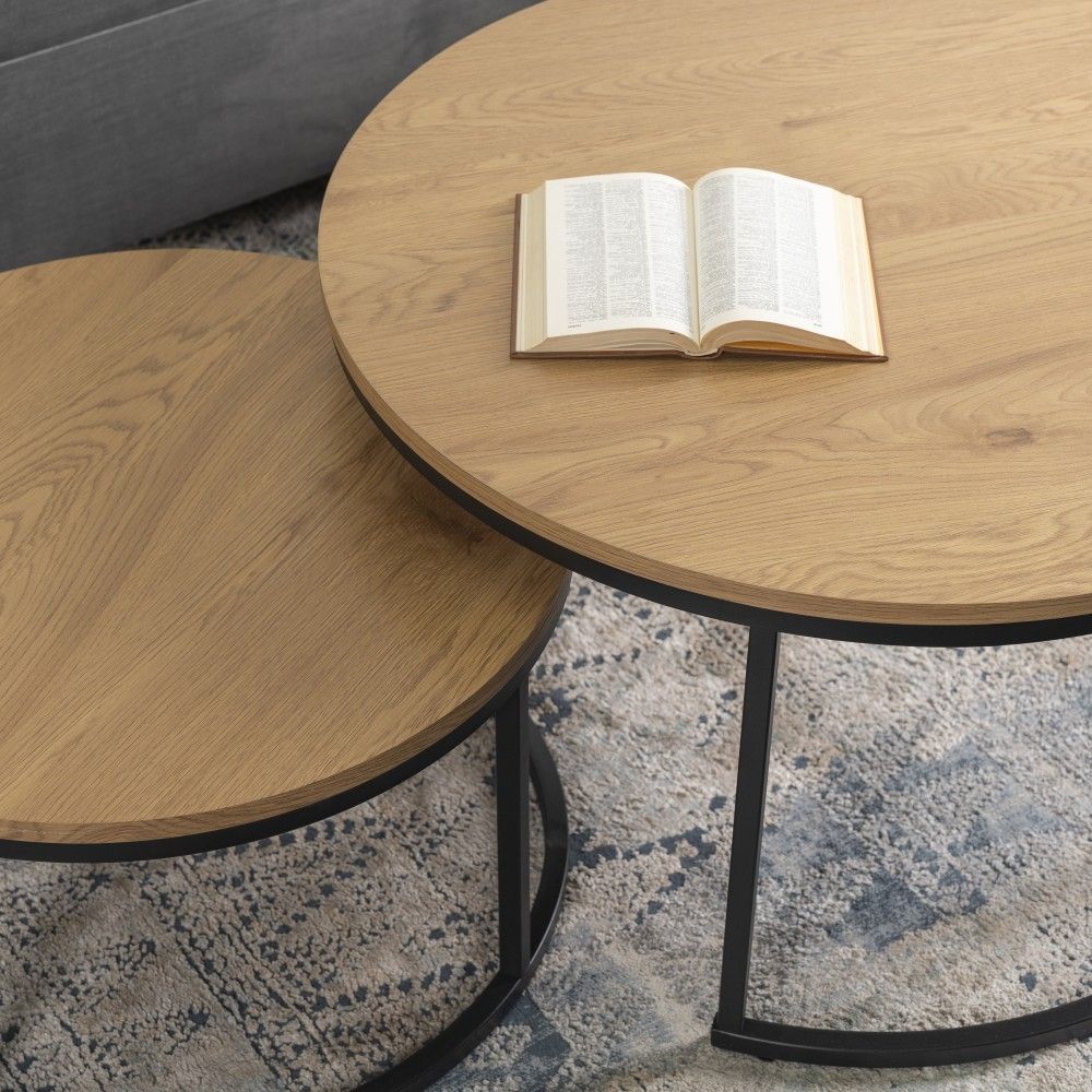 2 Beistelltische Ø 80 und 60 Tischset Couchtisch Ablagetisch Eiche Schwarz