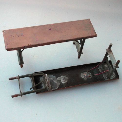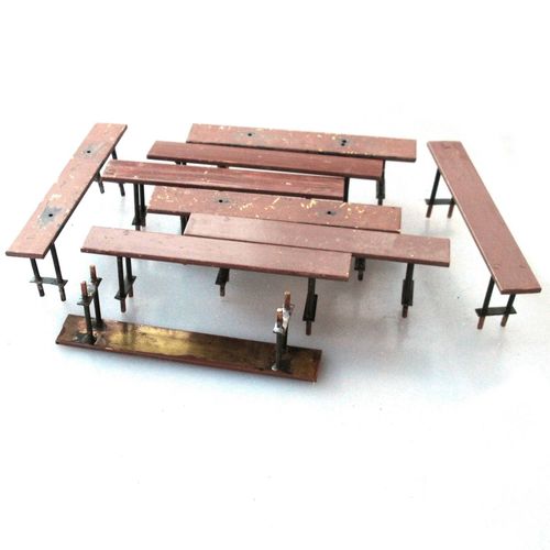 2 Biertische, 9 Bierbänke, Eigenbau, Metall, Spur G, 1:22,5
