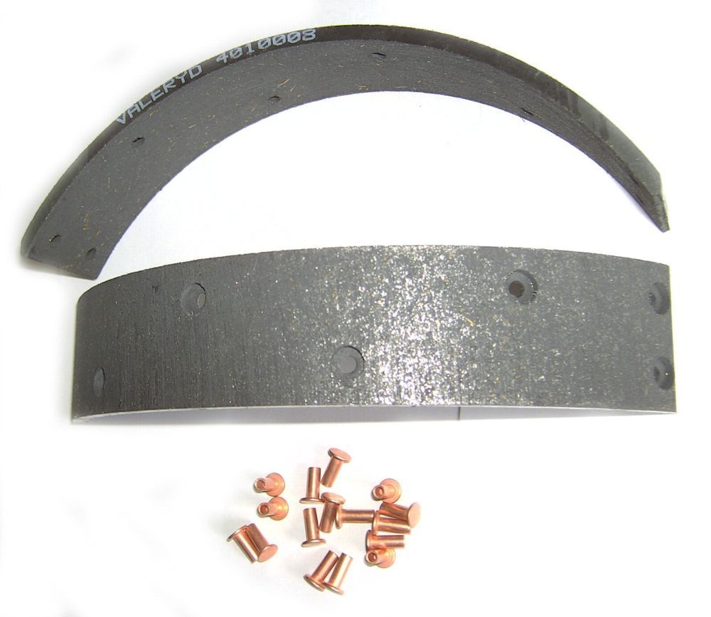 2 Stück Bremsbelag für BPW - Peitz Radbremse R234-76 (230x40) mit je 8 Nieten Für Trommeldurchmesser innen 230 mm Bremsbackenbreite 40 mm Der Belag hat 8 Nietlöcher - 16 Kupfernieten 10x4 sind beigelegt Passend bei Gummifeder-Achsen mit Typ EBG8,5U - EBG10UV - EBG10U - EBG12UV - EBG12U und Drehstabf