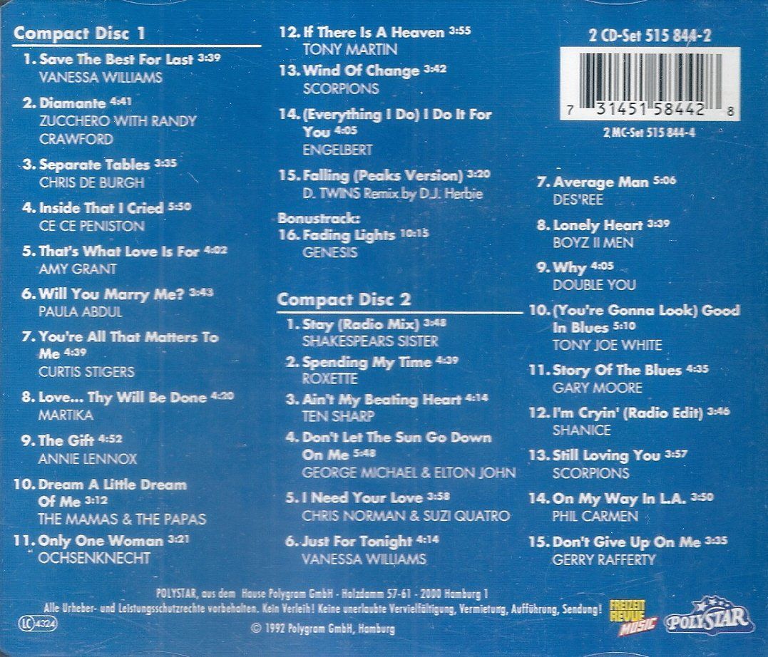 Titel: Sahnestücke ´92 - Die 30 Besten Soft-Rock Stücke