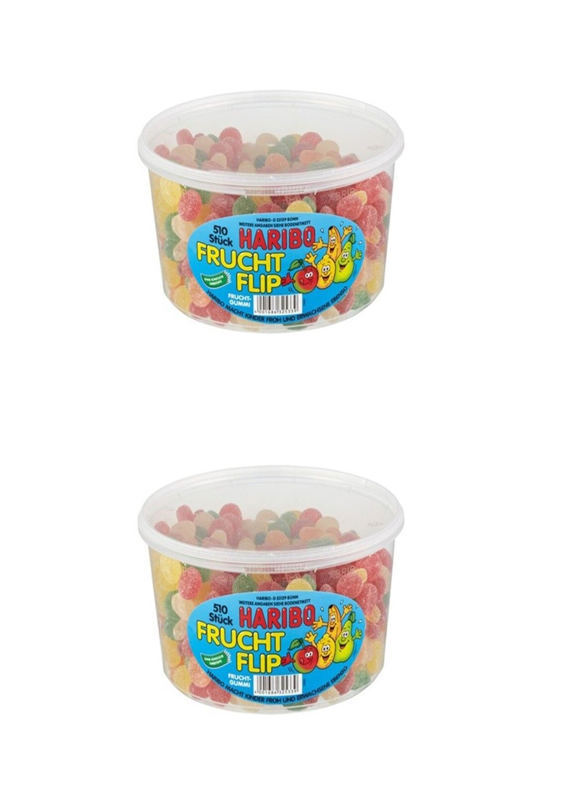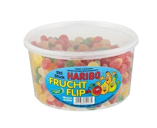 HARIBO 2 Dosen | Haribo Frucht Flip 510 Stück - 1,275 kg pro Dose
