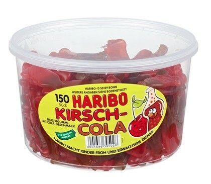 Haribo 2 Dosen | Haribo Kirsch-Cola 150 Stück - 1,35 kg pro Dose