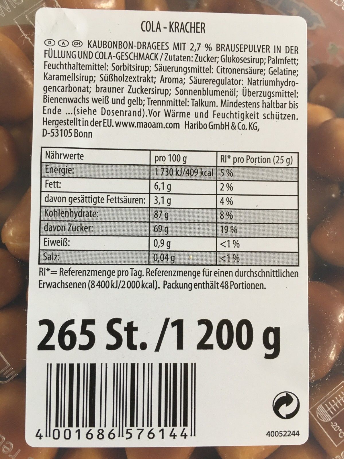 Maoam 2 Dosen | MAOAM | Kracher Cola a 265 Stück - 1,2 kg