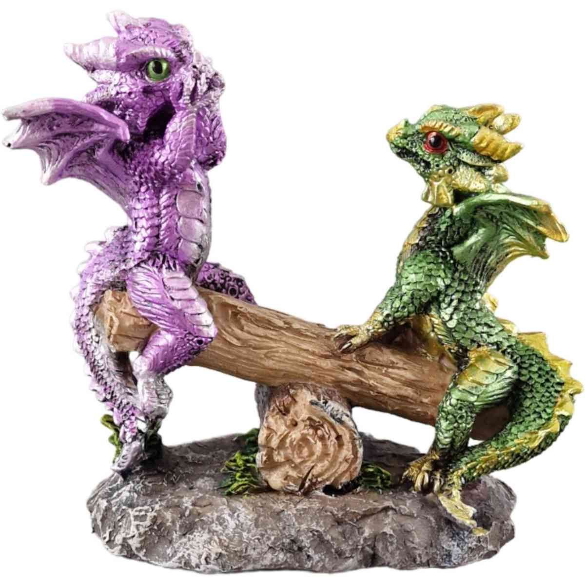 2 Drachen auf Wippe violett/ grün