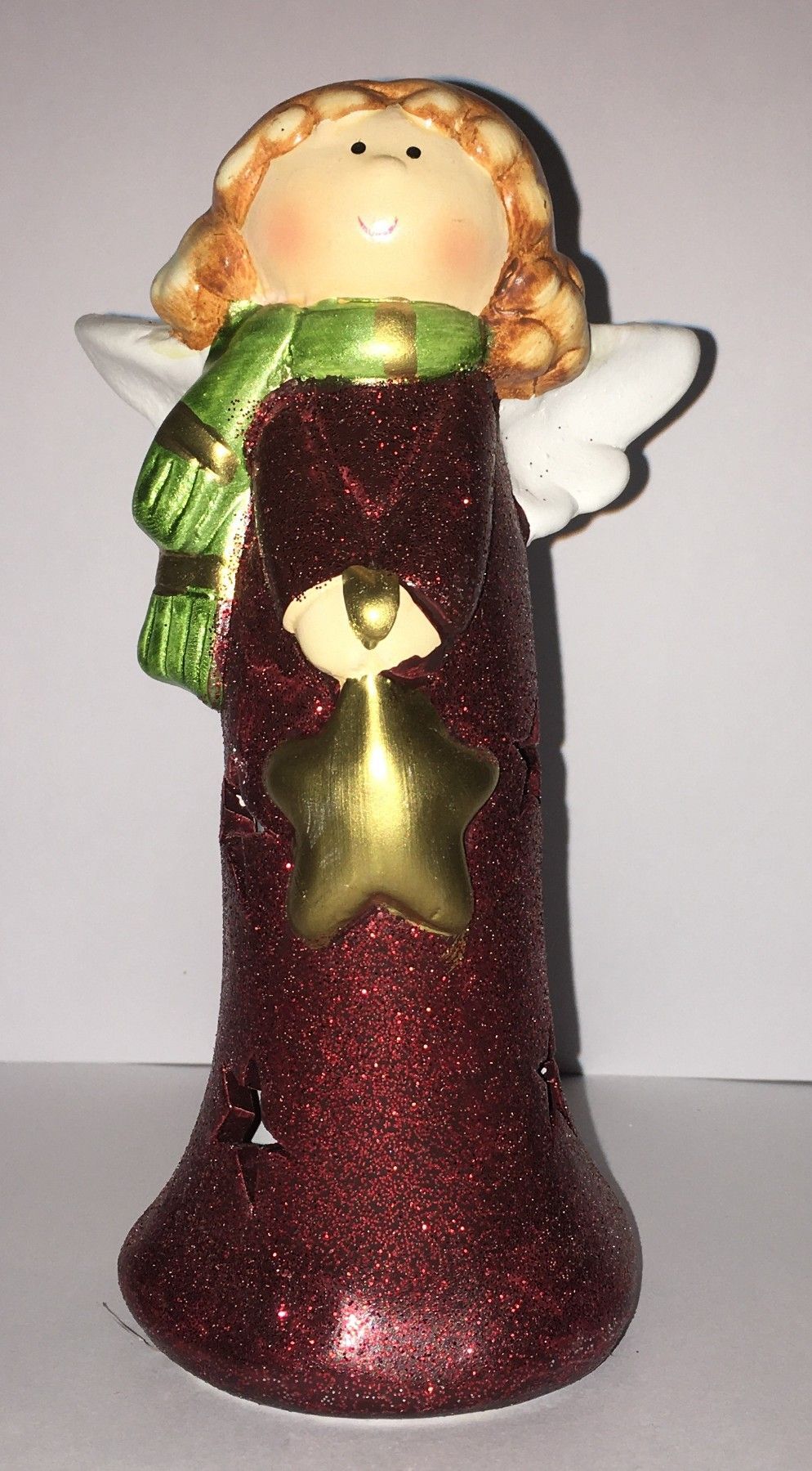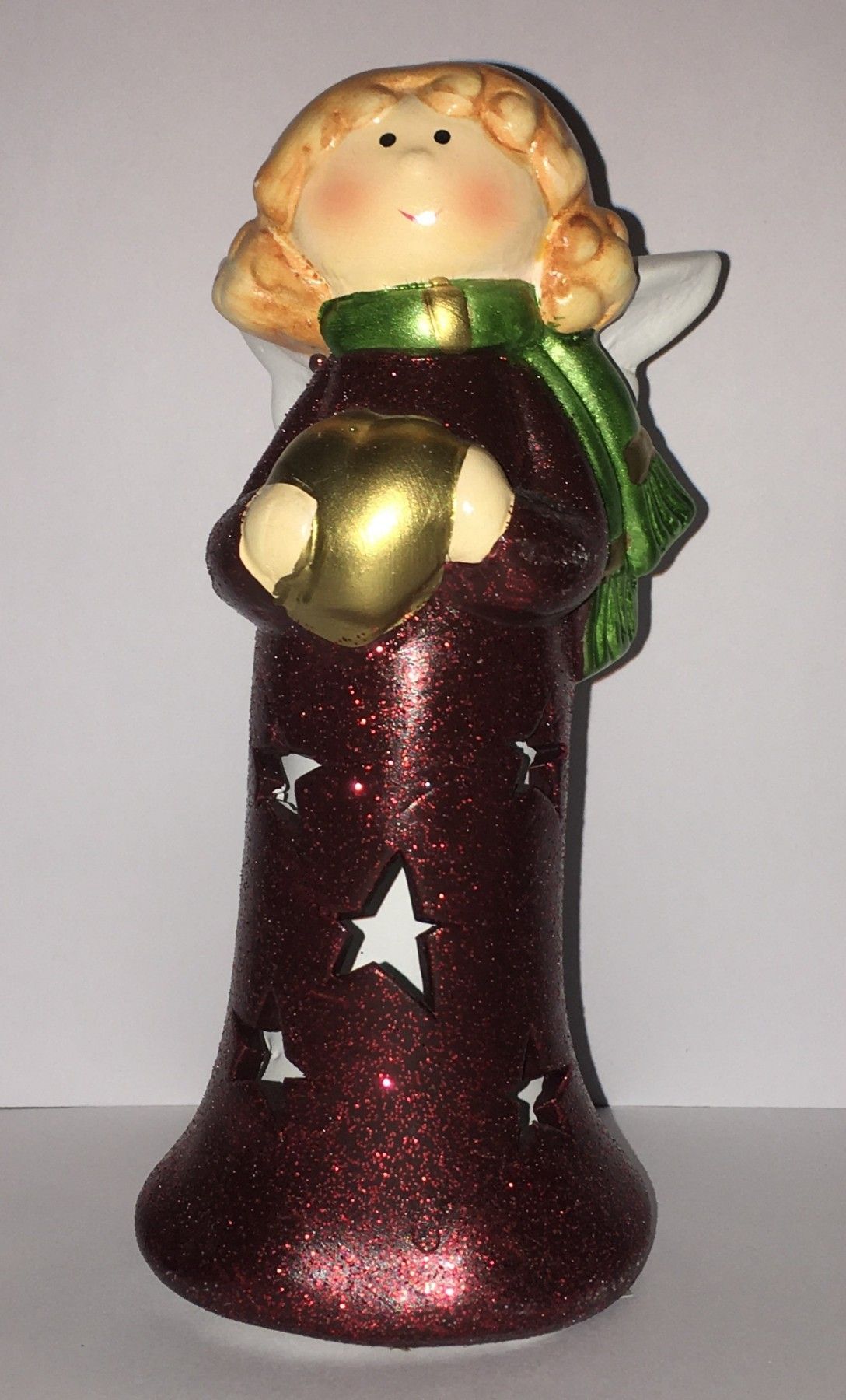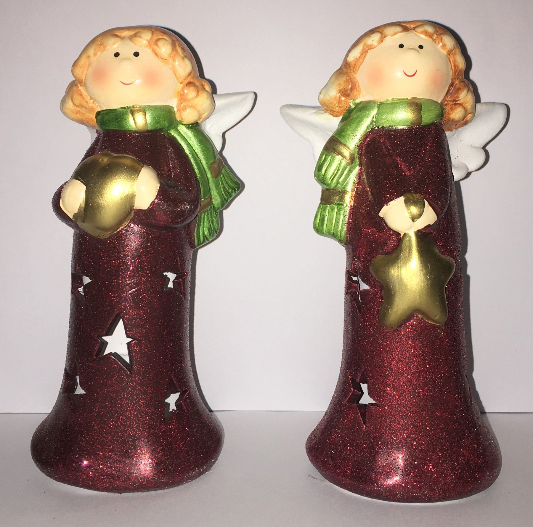 2 Engel rot metallic glitzernd 15 cm mit LED-Licht