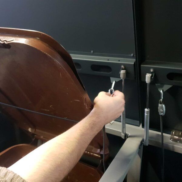 • Bitte bewegen Sie die Mülltonnenbox entweder auf kleinen Rollwagen oder wenigstens zu zwei Personen.
