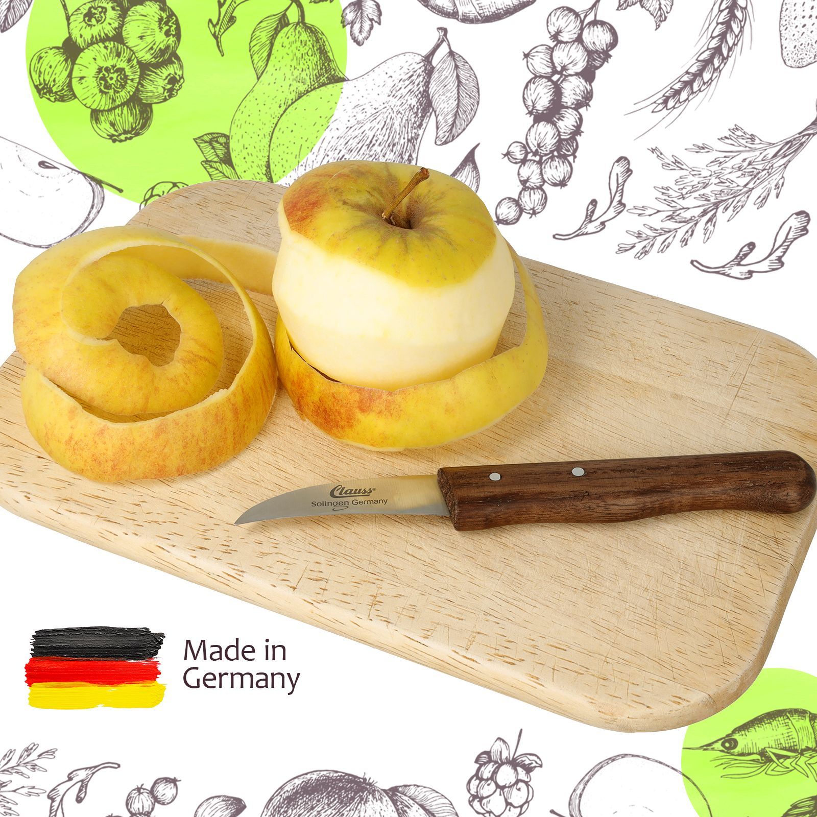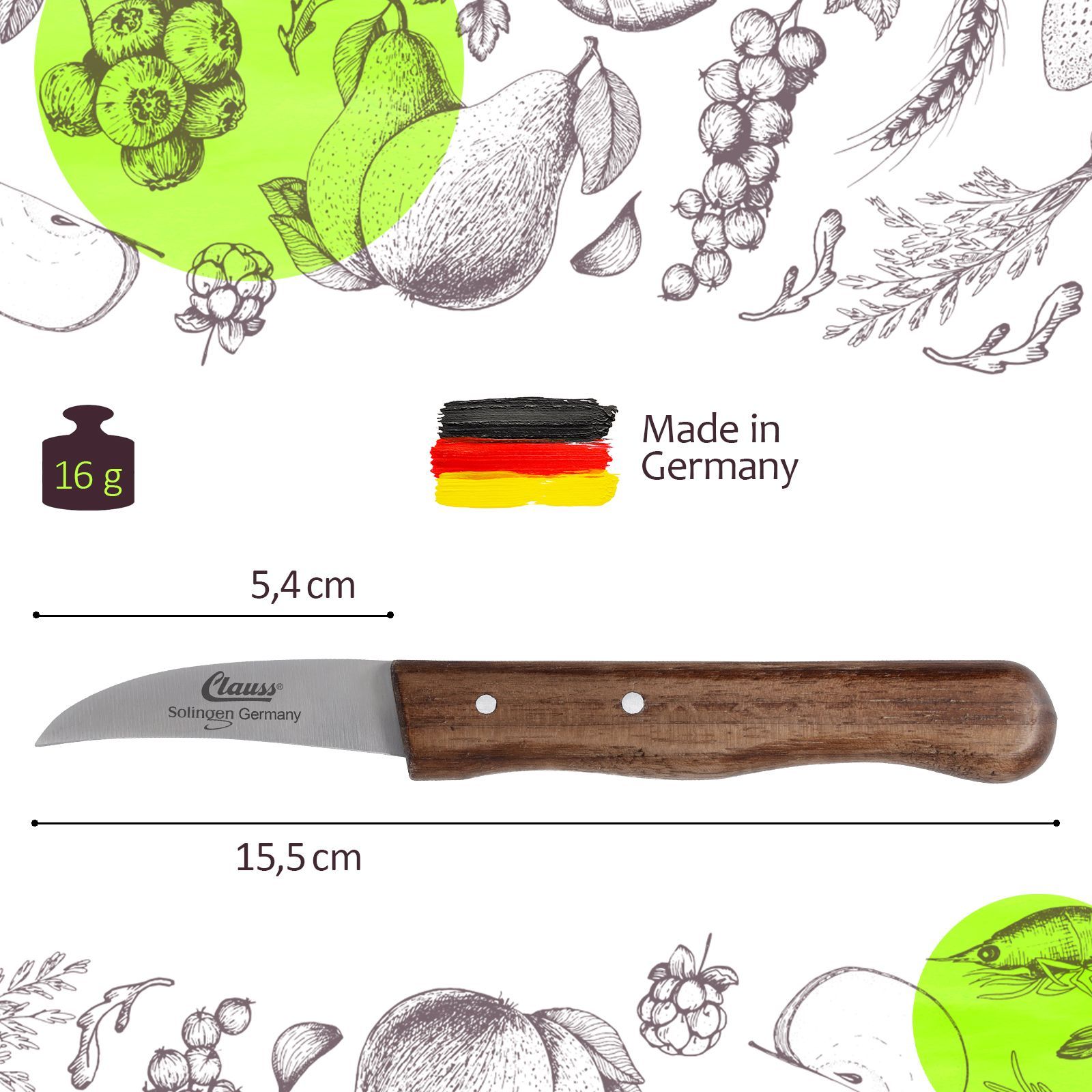 2-er Set Schälmesser gebogen rostfrei klein Holzgriff Schwarznuss scharf Obst Gemüse