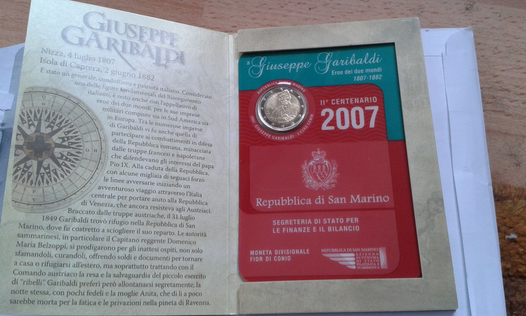 2 euro 2007 San Marino Garibaldi im Folder Blister 2 euro 2007 Garibaldi Guiseppe