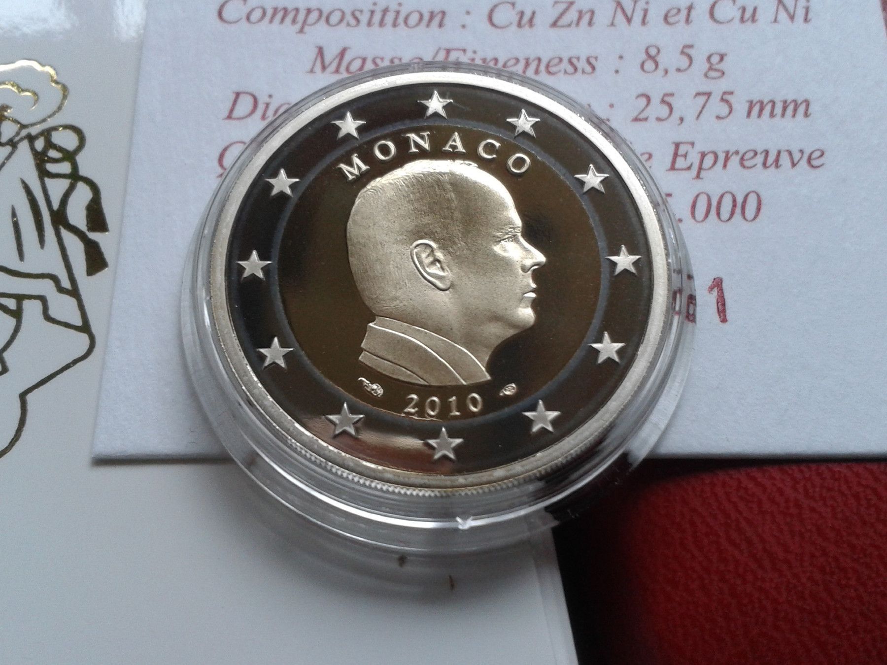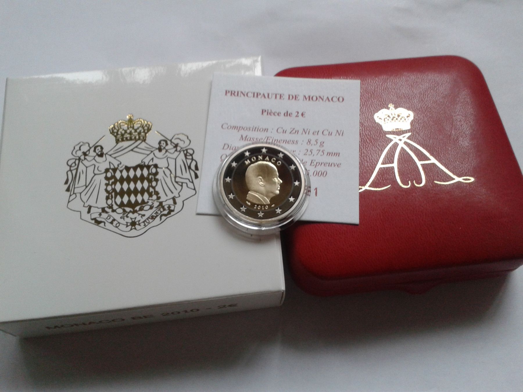 2 euro 2010 PP Monaco Fürst Albert II. im Etui mit Zertifikat und Umverpackung