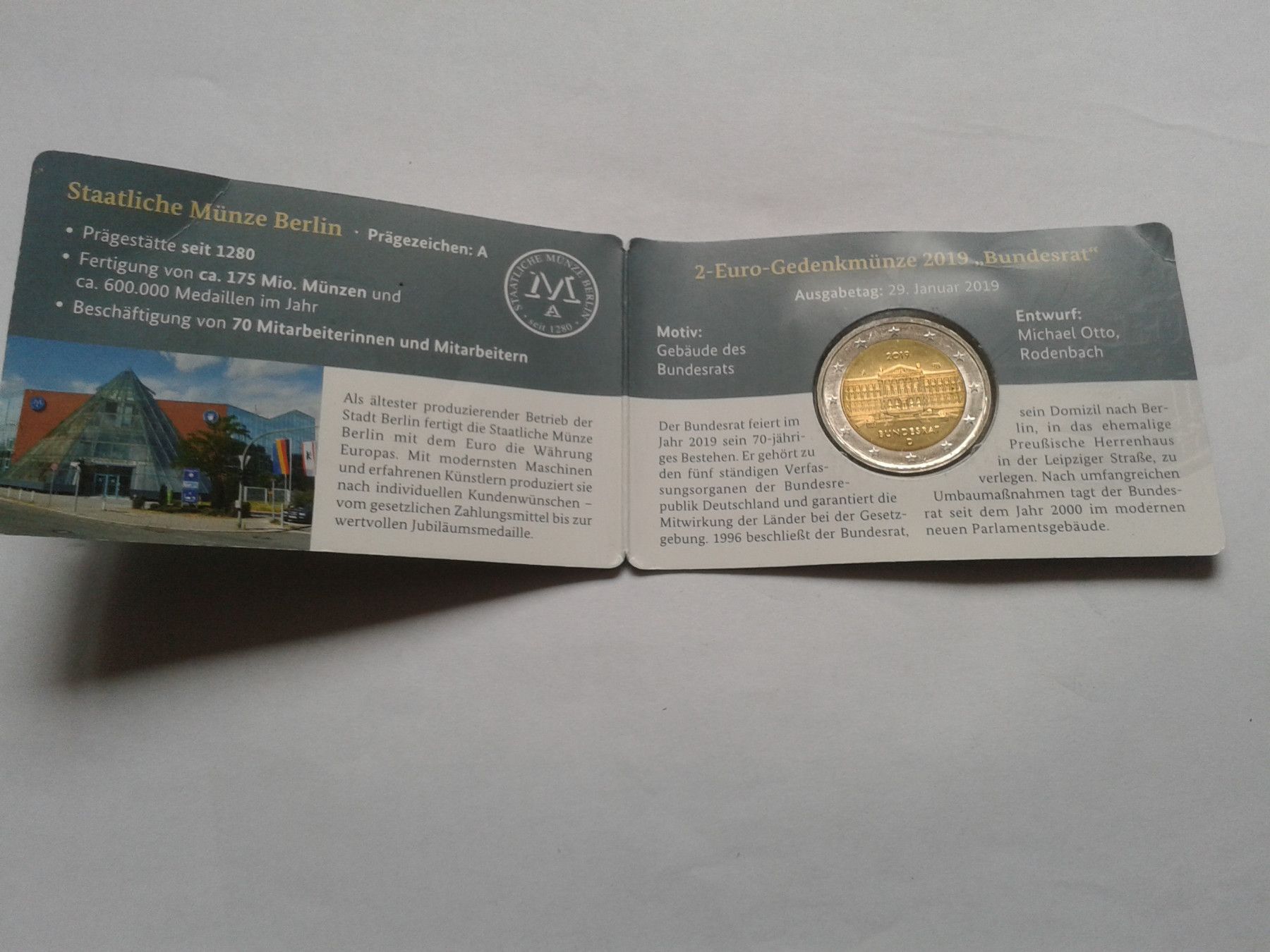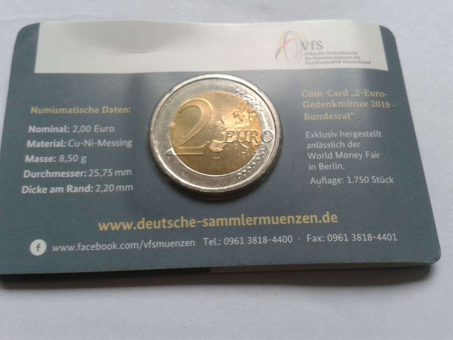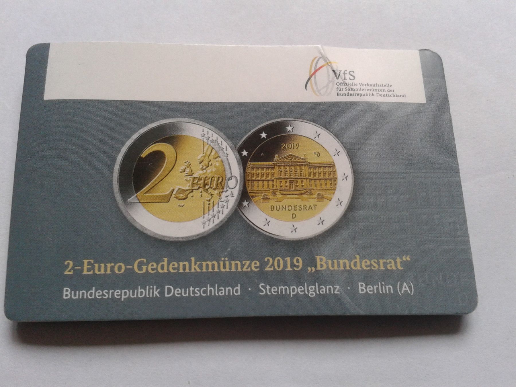 2 euro 2019 A coincard München Bundesrat WMF Berlin - nur 1000 St. auf der WMFBerlin 2019 erhältlich gewesen, Prägebuchstaben A Besteuerung gemäss UstG§25a (Differenzbesteuerung)