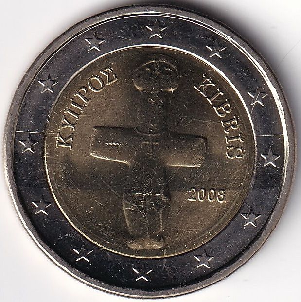 Bezeichnung Designation: 2 Euro Münze Zypern Titel title: Idol von Pomos Ausgabjahr Year of issue: 2008 Legierung alloy: CuNi CuZn Erhaltung, Größe: ST, Durchschitt 25,75 Auflage Edition: 25.000.000 Stück Zustand Status: unzirkuliert Bankfrisch Verpackung Packaging: verschlossener Beutel Sonstiges O