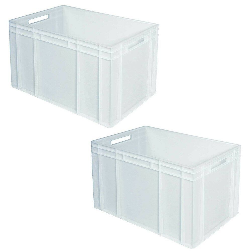 2 Eurobehälter mit 2 Durchfassgriffen, LxBxH 600 x 400 x 420 mm, 83 Liter, weiß