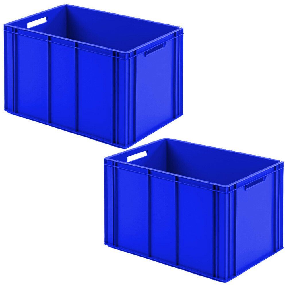 2 Eurobehälter mit 2 Durchfassgriffen, LxBxH 600x400x420 mm, blau, Rippenboden