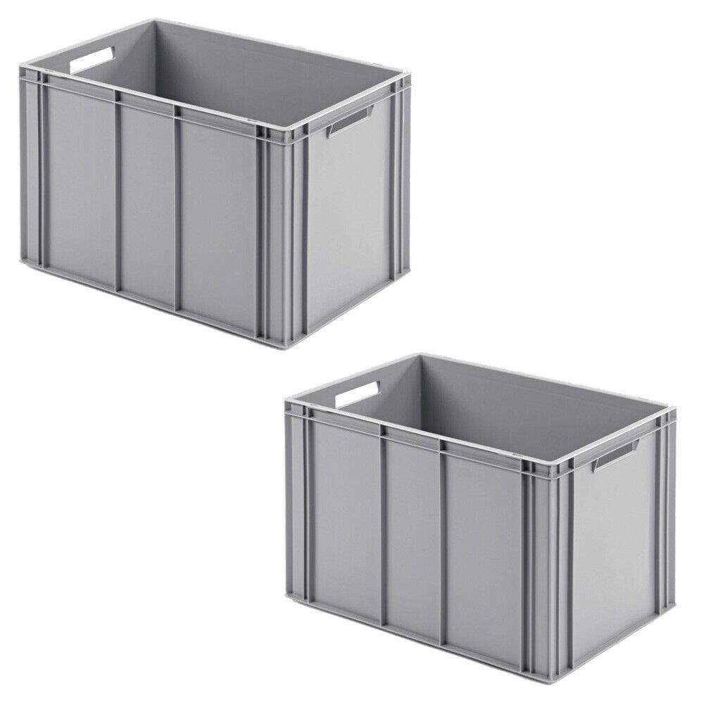 2 Eurobehälter mit 2 Durchfassgriffen, LxBxH 600x400x420 mm, grau, Rippenboden