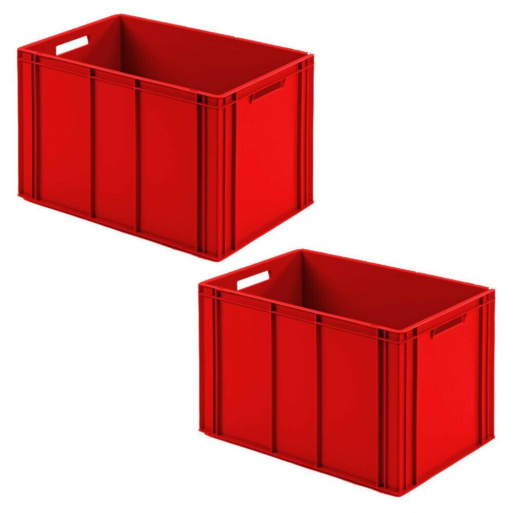 2 Eurobehälter mit 2 Durchfassgriffen, LxBxH 600x400x420 mm, rot, Rippenboden