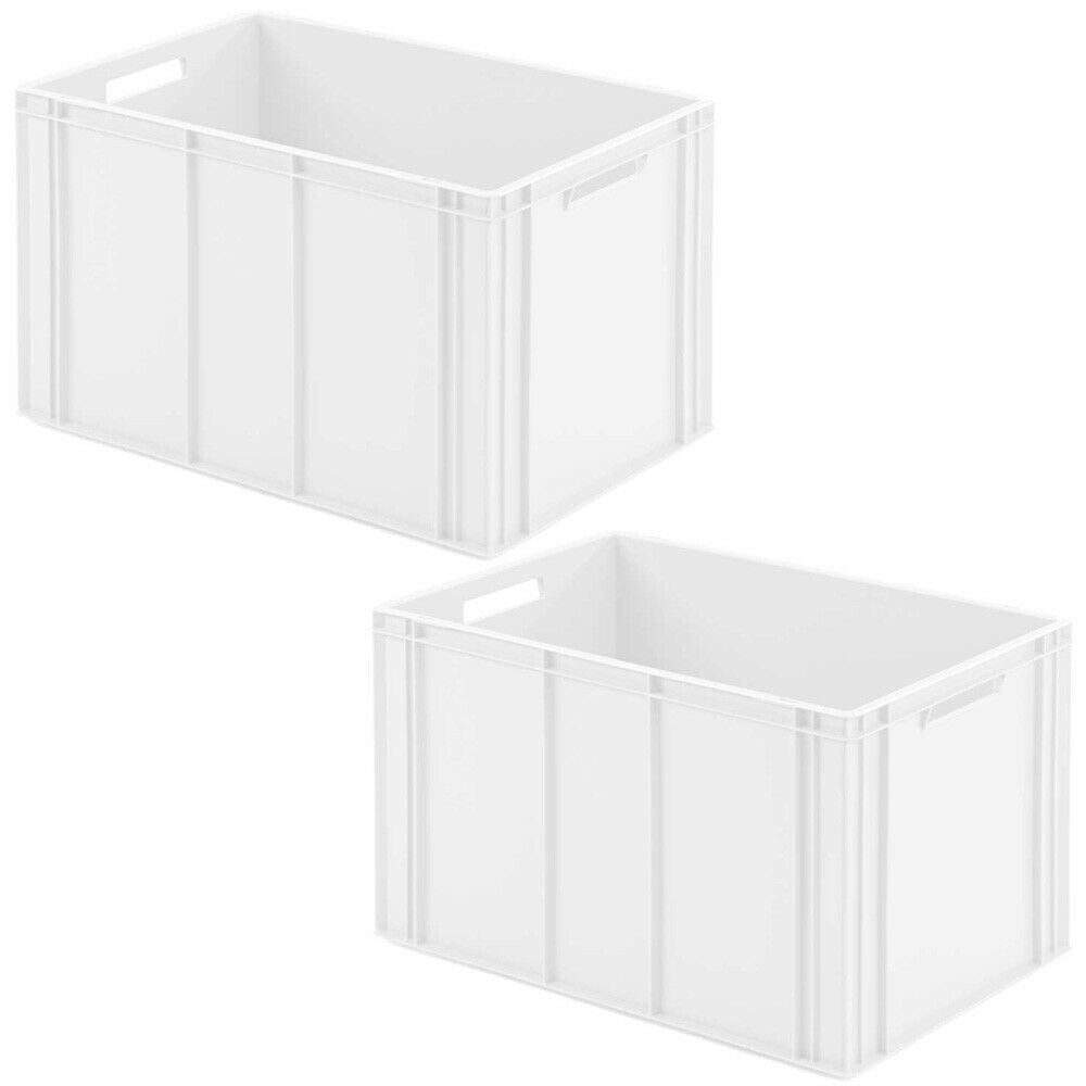 2 Eurobehälter mit 2 Durchfassgriffen, LxBxH 600x400x420 mm, weiß, Rippenboden