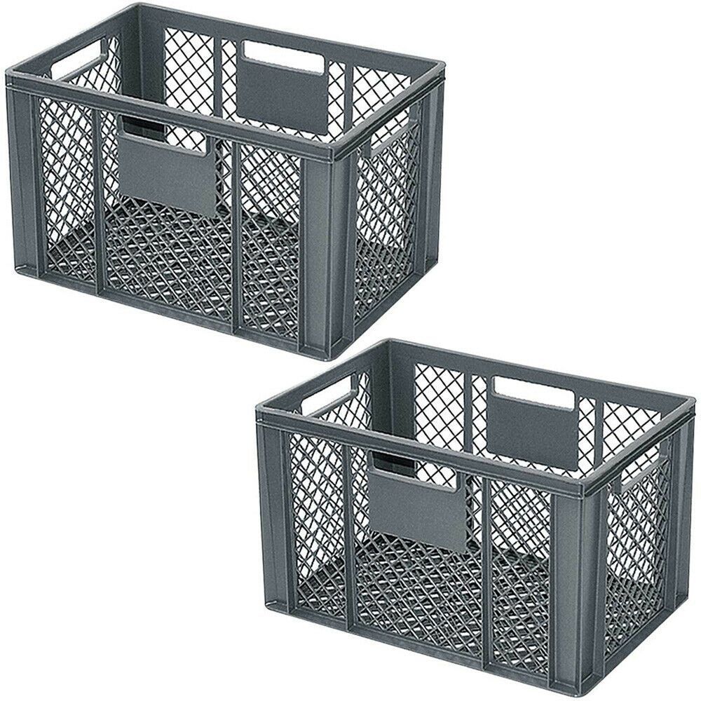 2 Eurobehälter mit 4 Durchfassgriffen, LxBxH 600x400x350 mm, 67 Liter, grau