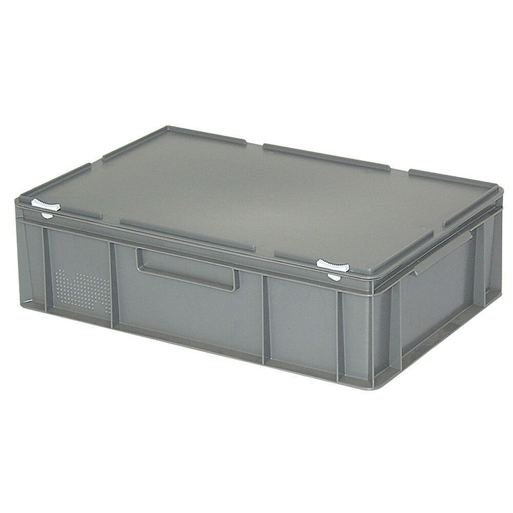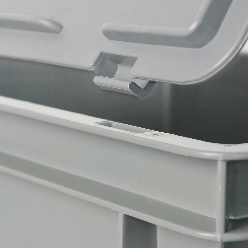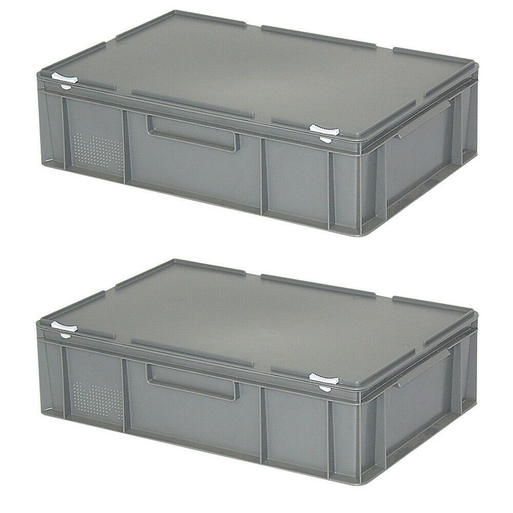 2 Eurobehälter mit Deckel, LxBxH 600x400x180 mm, 33 Liter, grau, PE-HD